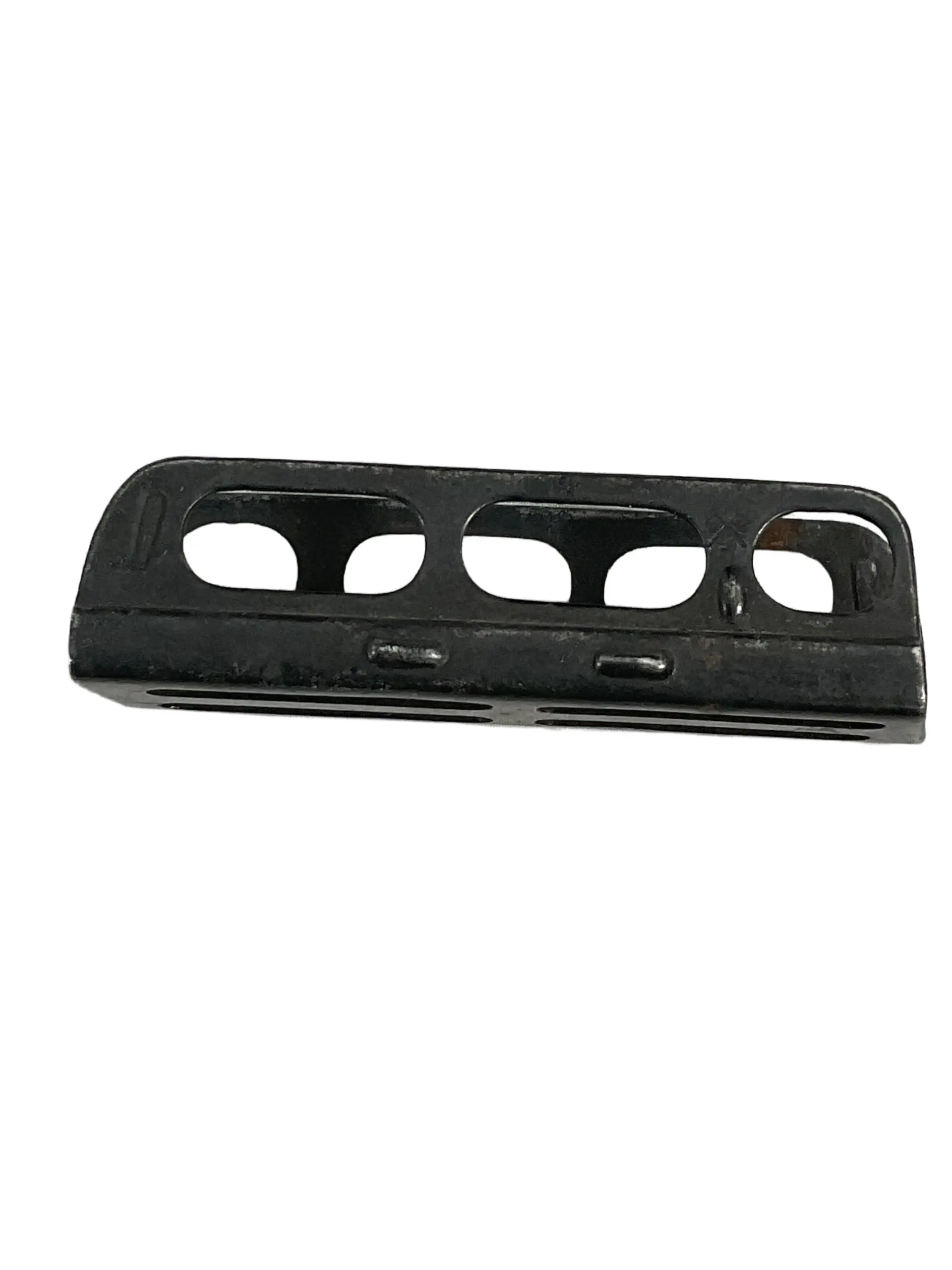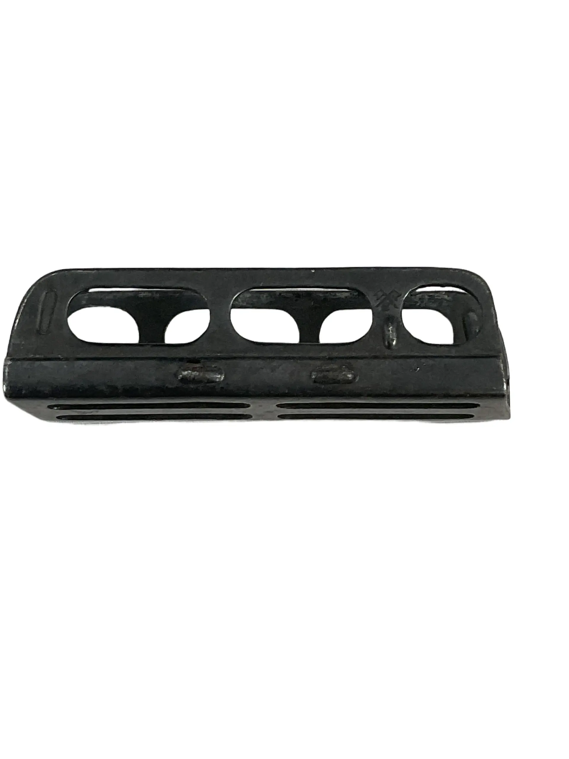 The WW1 British No 1 Mk3 Enfield .303 Stripper Clip is a steel ammunition loading device designed for use with the Short Magazine Lee-Enfield (SMLE) rifle, standard issue for British and Commonwealth forces during the First World War. This stripper clip holds five rounds of .303 British ammunition, allowing for rapid reloading of the rifle’s internal magazine. The clip is constructed from stamped steel, typically left uncoated or finished with a protective phosphate coating to resist corrosion. Its design features two side rails, slightly flared ends, and cutouts to reduce weight and facilitate easy thumb operation. During WW1, these clips were issued to infantry and specialist troops to enhance the rate of fire and efficiency in combat. The No 1 Mk3 stripper clip is an important accessory reflecting early 20th-century military logistics and technology. It remains a widely collected item among historical firearms and militaria enthusiasts.