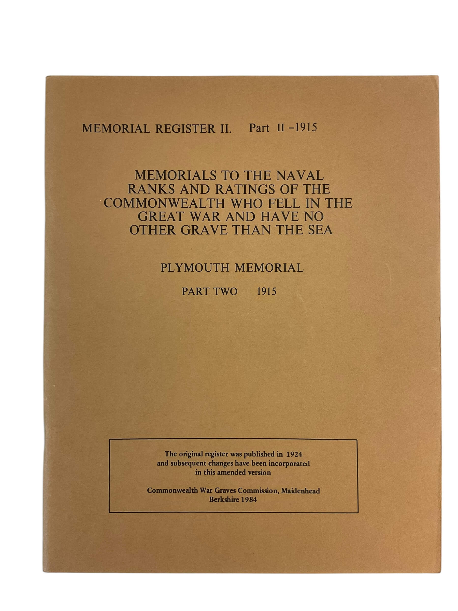 WW1 British Plymouth Memorial Part 2 1915 Used Softcover Reference Book