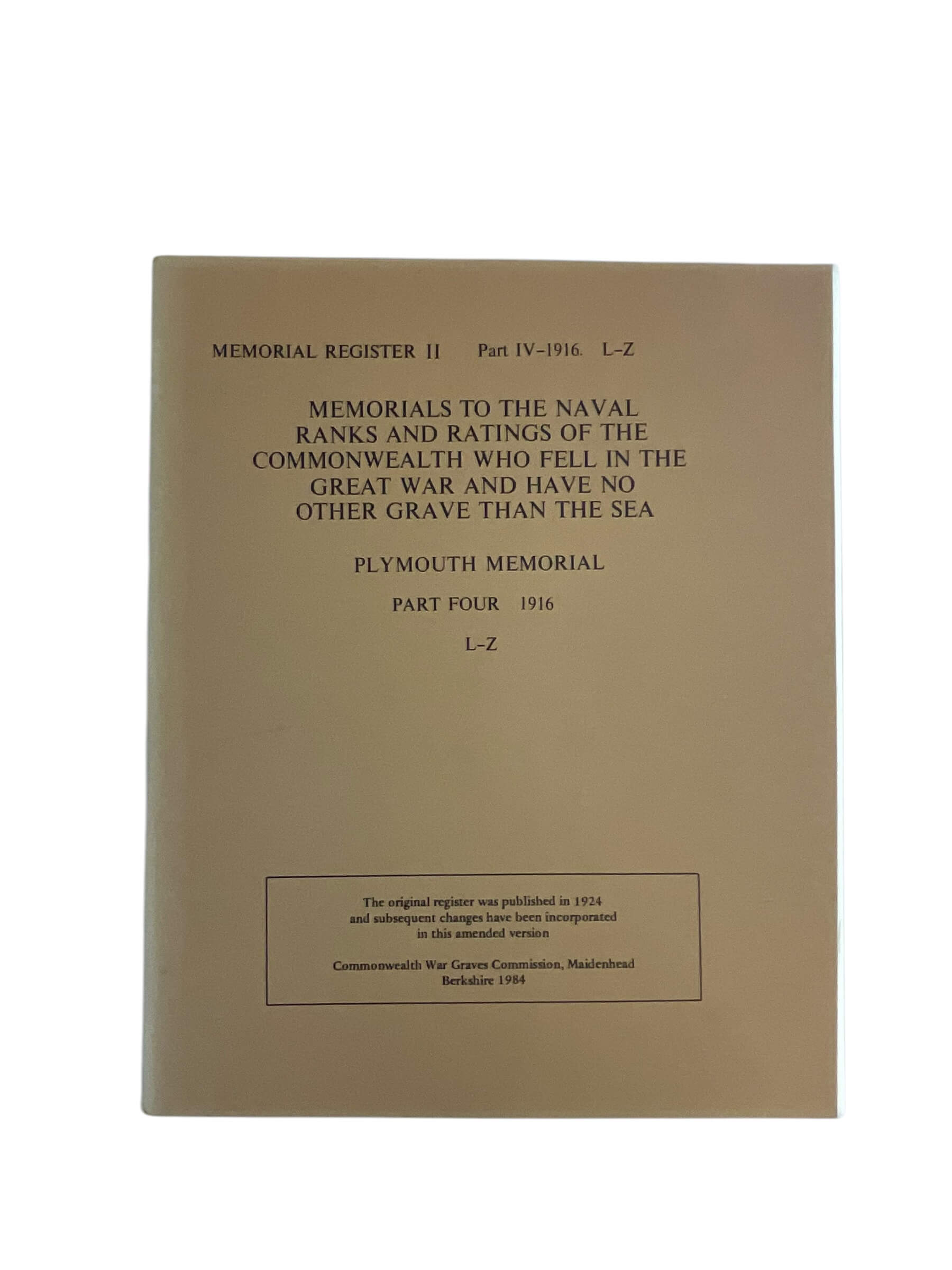 WW1 British Plymouth Memorial Part 4 1916 L-Z Used Softcover Reference Book