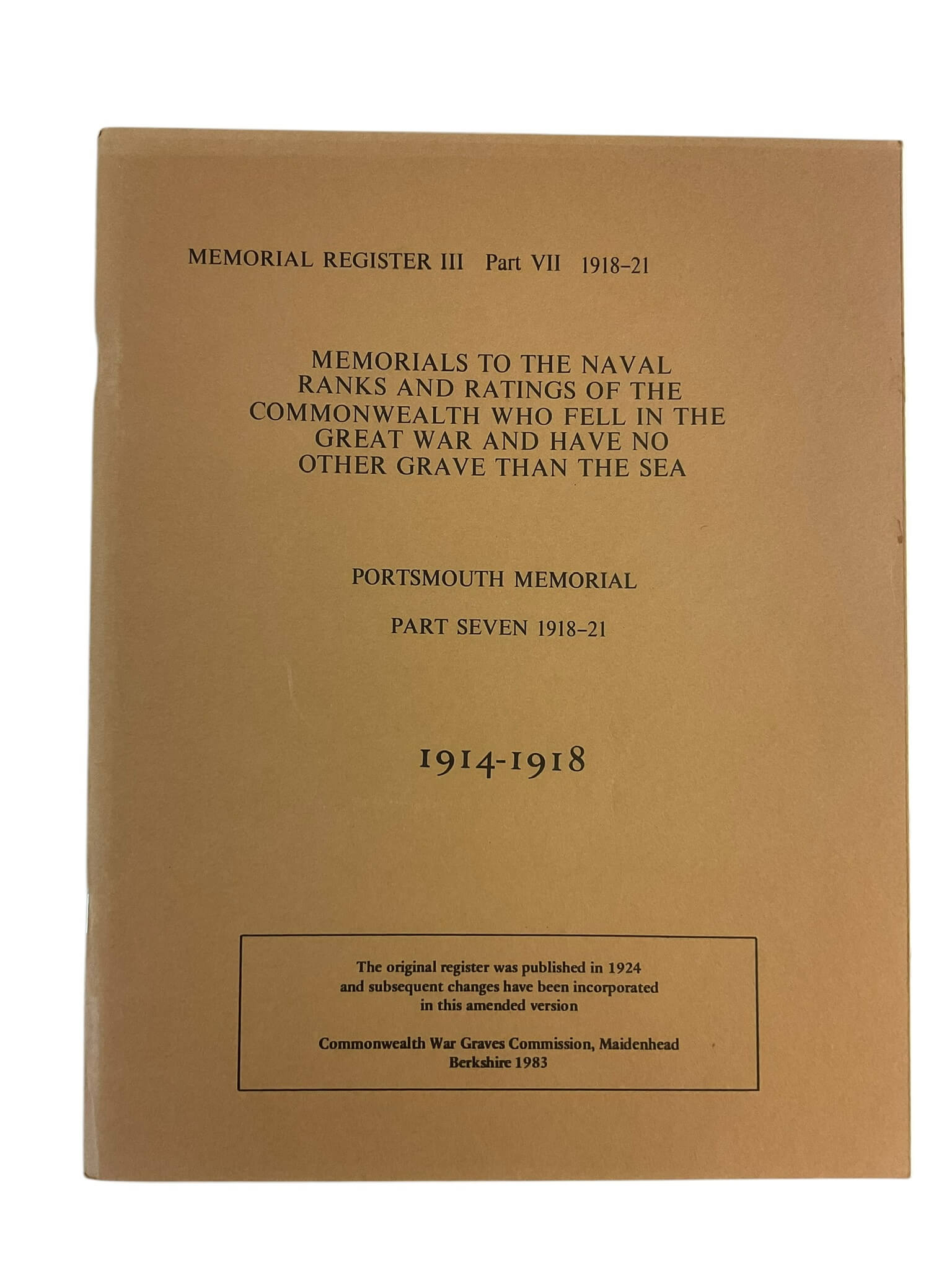 WW1 British Portsmouth Memorial Part 7 1918-21 Used Softcover Reference Book