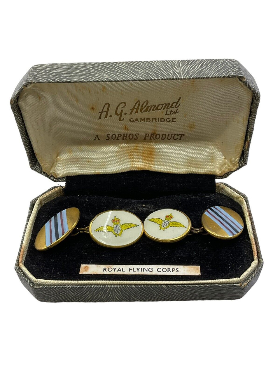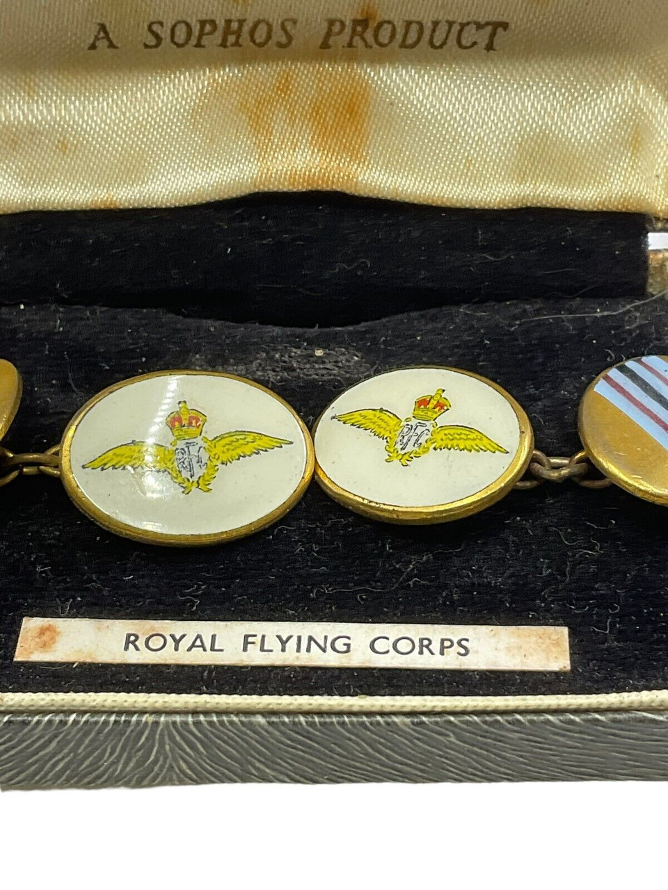 WW1 British Royal Flying Corps RFC Cuff Links in Case