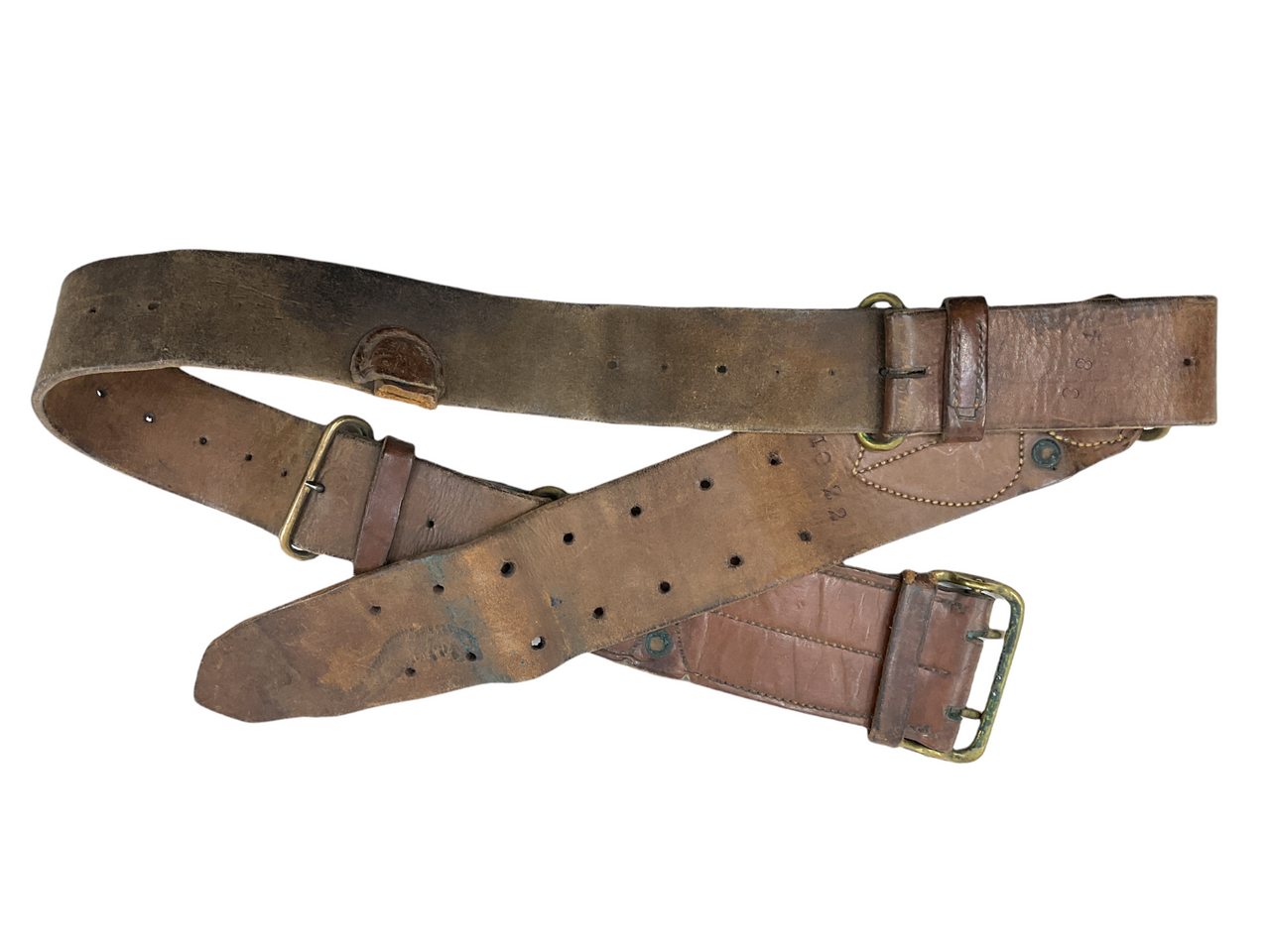 WW1 Canadian 1916 Pattern Leather Waist Belt The WW1 Canadian 1916 Pattern Leather Waist Belt is an authentic piece of military history, reflecting the craftsmanship and utility of wartime gear used by Canadian soldiers. Crafted from sturdy leather, this belt was designed in 1916 and became a standard issue for Canadian troops during World War I. Featuring brass hardware and adjustable length, it served both functional and ceremonial purposes. The belt’s robust construction ensured durability and reliability in the harsh conditions of the battlefield. Beyond its practical applications, the belt also carries a significant historical value, representing the bravery and resilience of soldiers who wore it. Collectors and historians alike prize this belt for its authentic design and the story it tells of Canada’s contribution to the Great War. Whether displayed as a museum piece or part of a historical reenactment uniform, the 1916 Pattern Leather Waist Belt remains a poignant symbol of military heritage.
