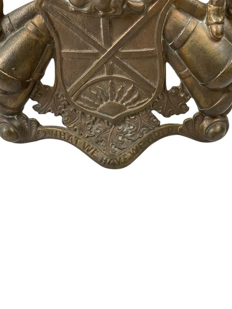 This WW1 Canadian Brass Patriotic Mantel Clock is a stunning piece of historical memorabilia. Crafted from polished brass, this clock showcases the exquisite craftsmanship of the time and commemorates the Canadian forces’ valiant efforts in World War I. Its design features symbolic Canadian and military motifs, reflecting the patriotism that was prevalent during the war era. The clock’s face is intricately detailed, with Roman numerals marking the hours. The fine brass construction gives it an elegance that can adorn any room, while its historical significance stirs a sense of nostalgia. This mantel clock is more than just a timepiece; it’s a tribute to the brave Canadians who fought for their country during the Great War. It’s an ideal piece for collectors of war memorabilia or lovers of historical artifacts.