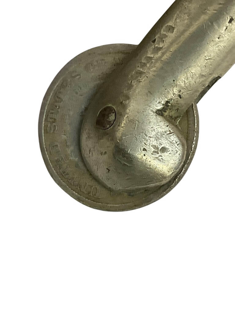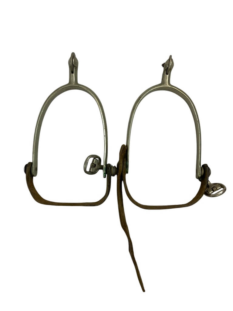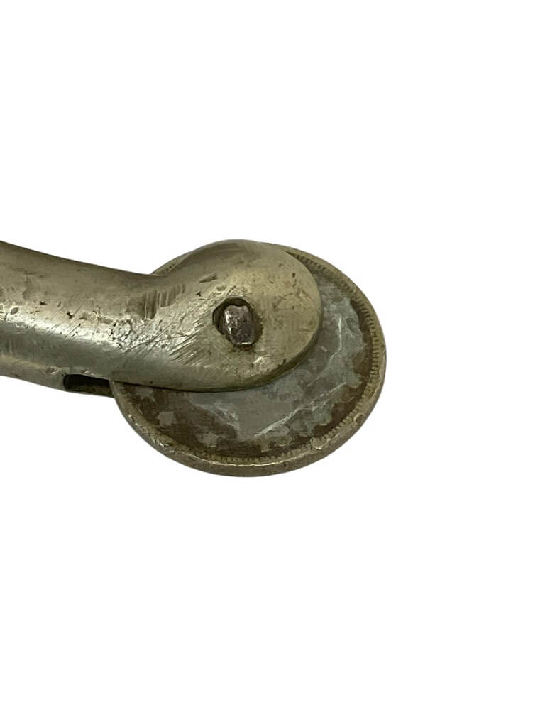 This product is a rare and authentic pair of WW1 Canadian British BEF CEF spurs. These military artifacts were employed by the Canadian Expeditionary Force (CEF) and British Expeditionary Force (BEF) during the First World War. Each spur is meticulously crafted, showcasing the ruggedness needed for the harsh conditions of war, yet reflecting the time-honored tradition of cavalry regiments. Made of robust metal, they are designed to withstand the test of time, making them an excellent addition to any military memorabilia collection. These spurs encapsulate a significant period in world history and represent the bravery and dedication of the soldiers who served in the Canadian and British forces. They are not just historical artifacts but also valuable collectibles that evoke a sense of nostalgia and respect for their historical significance.