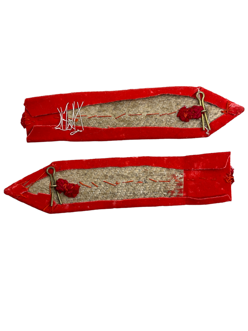 This unique pair of WW1 Canadian British BEF CEF Senior Officer Collar Rank Insignia Patches offers a rare glimpse into military heraldry and the distinguished history of senior officers during World War I. Each patch is meticulously crafted, displaying the intricate embroidery and profound symbolism that signified rank and authority within both the British Expeditionary Force (BEF) and the Canadian Expeditionary Force (CEF). These patches, often worn on the collar, played a crucial role in identifying senior officers on the battlefield and within military units. This pair, preserved over the decades, embodies the valor, discipline, and leadership of those who served. Ideal for collectors of military memorabilia, historians, or anyone with a keen interest in WW1 artifacts, these patches not only represent a piece of military uniform but also a significant part of our shared global heritage.