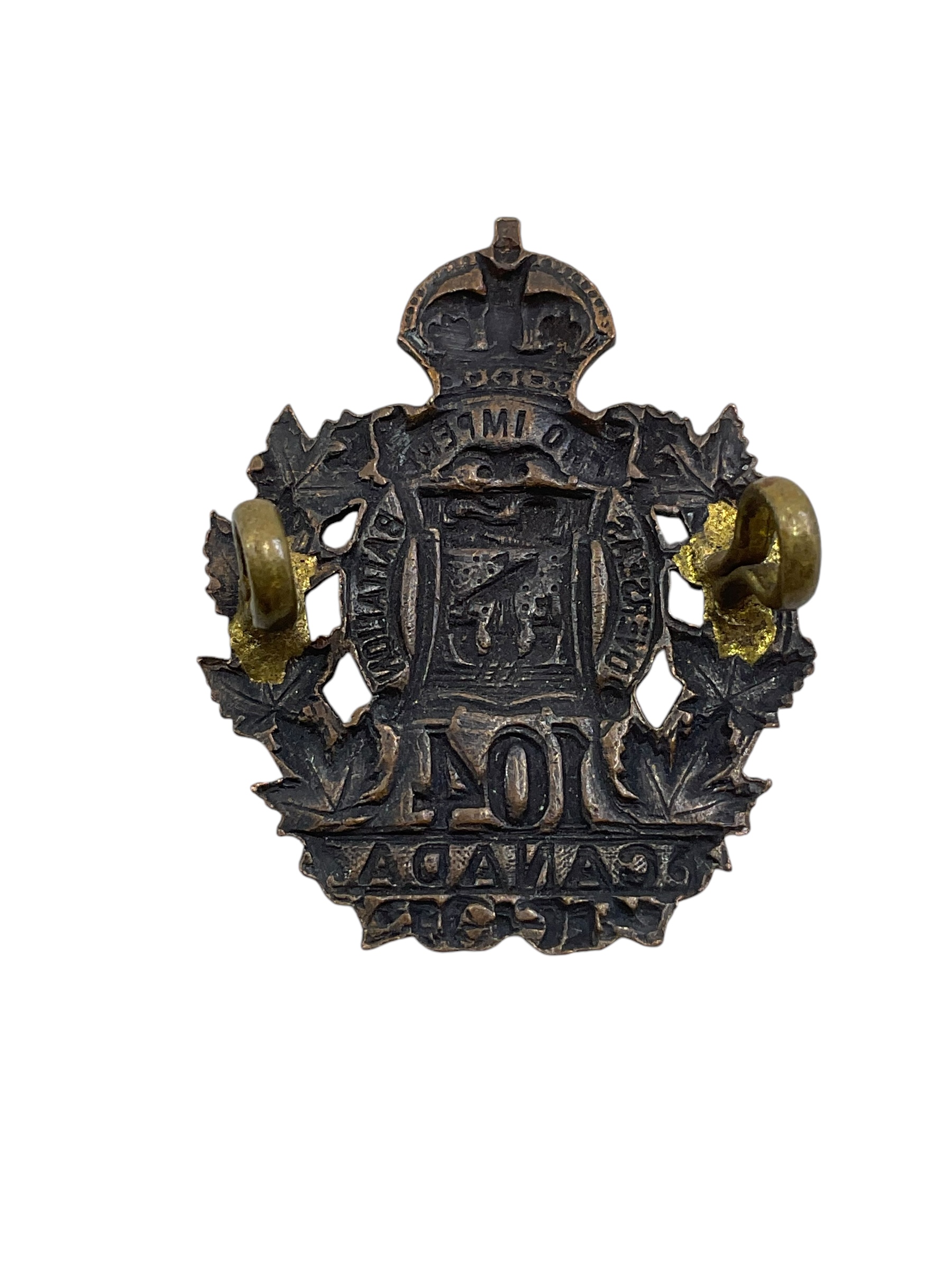 This item is a WW1 Canadian CEF 104th Battalion Collar Insignia Single, a rare and valuable piece of military history. It was a part of the uniform worn by soldiers who served in the Canadian Expeditionary Force’s 104th Battalion during World War 1, representing their dedication and bravery. This singular collar insignia is a testament to the incredible sacrifices made by these soldiers. It features the battalion’s unique emblem, intricately designed with high attention to detail. The insignia is made of durable material, built to withstand the harsh conditions of war. Despite its age, it has been preserved in excellent condition, retaining its original luster and design integrity. This is a perfect piece for any military memorabilia collector or historian interested in WW1 artifacts. Owning this insignia is like owning a piece of Canadian military history.