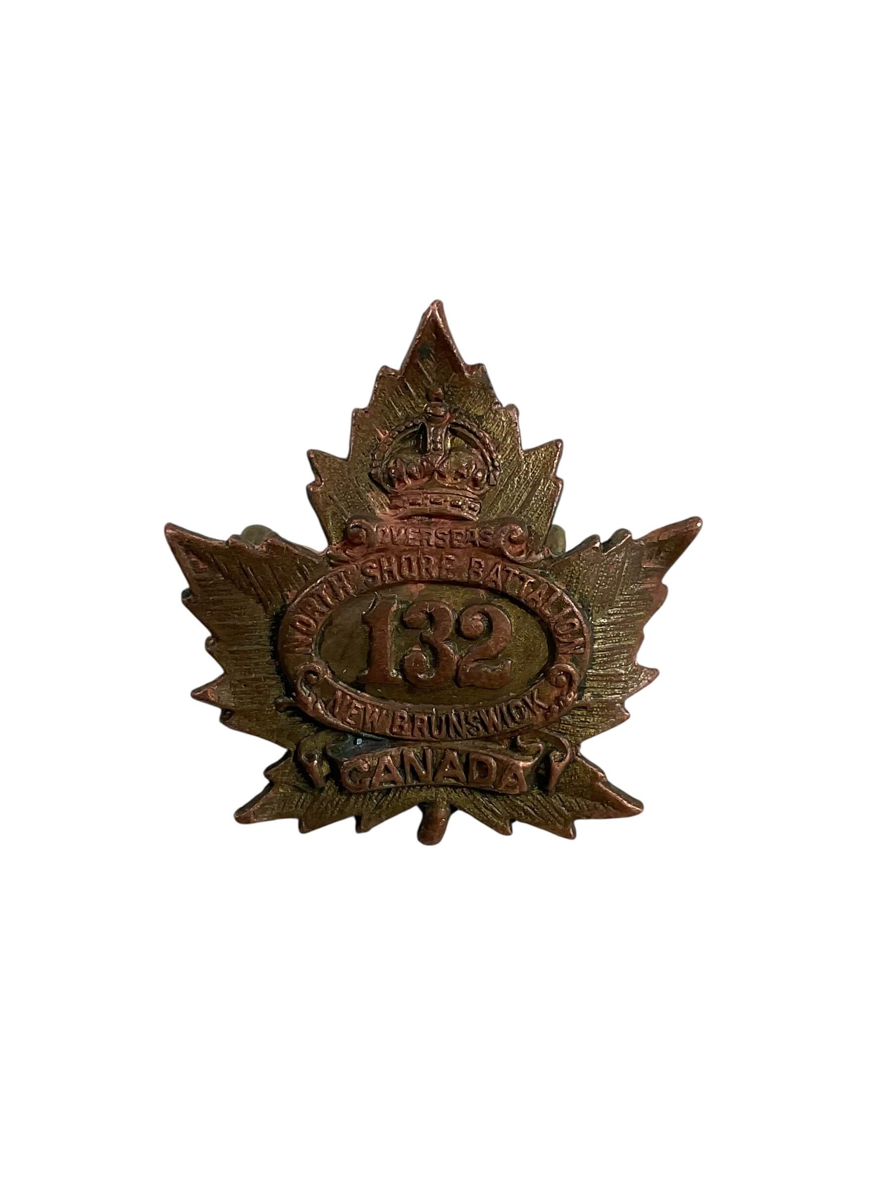 This title refers to a genuine WW1 Canadian CEF 132nd Battalion North Shore Collar Insignia Single, a highly treasured military collectible. The 132nd Battalion of the Canadian Expeditionary Force (CEF) was an infantry battalion that served prominently on the North Shore during World War 1. This collar insignia is an emblem of that rich history, worn proudly by the brave soldiers of the battalion. It is a single insignia piece, typically attached to the collar of the military uniform. This authentic piece is not just a collectible, but a symbol of the valor and resilience of the Canadian forces during one of the most challenging times in global history. It draws interest from military historians, collectors, and those with a deep respect for WW1 history. This insignia is a unique artifact that encapsulates a significant part of Canadian wartime heritage.