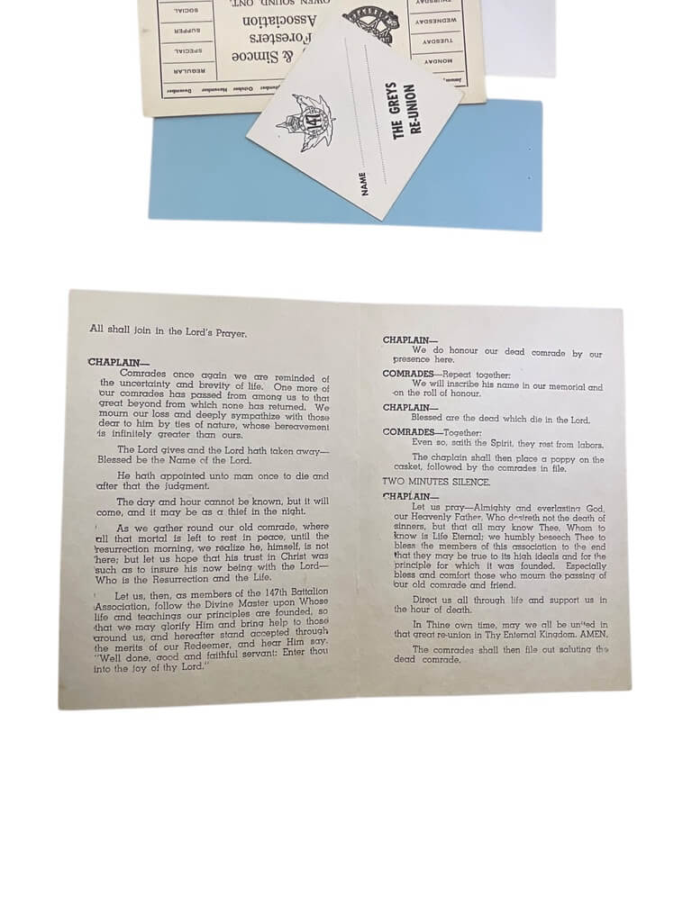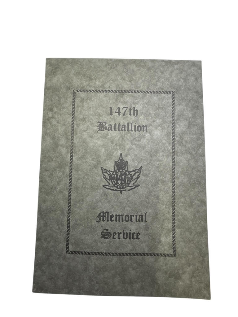 The ‘WW1 Canadian CEF 147th Battalion Memorial Service Booklet’ is a remarkable historical document, commemorating the brave soldiers of Canada’s 147th Battalion during World War I. This booklet offers a poignant glimpse into the past by highlighting the ceremonies and rituals observed in memory of the fallen heroes of this battalion. It is filled with a rich collection of speeches, prayers, hymn lyrics, and lists of names, all honoring the Battalion’s service and sacrifice. The booklet is a priceless memento that reveals the collective mourning and remembrance of a nation during one of history’s most tumultuous times. It is an essential piece for historians, researchers, and anyone interested in Canadian military history or World War I. The WW1 Canadian CEF 147th Battalion Memorial Service Booklet encapsulates the spirit of heroism, patriotism, and resilience, making it a significant artifact from a pivotal era.