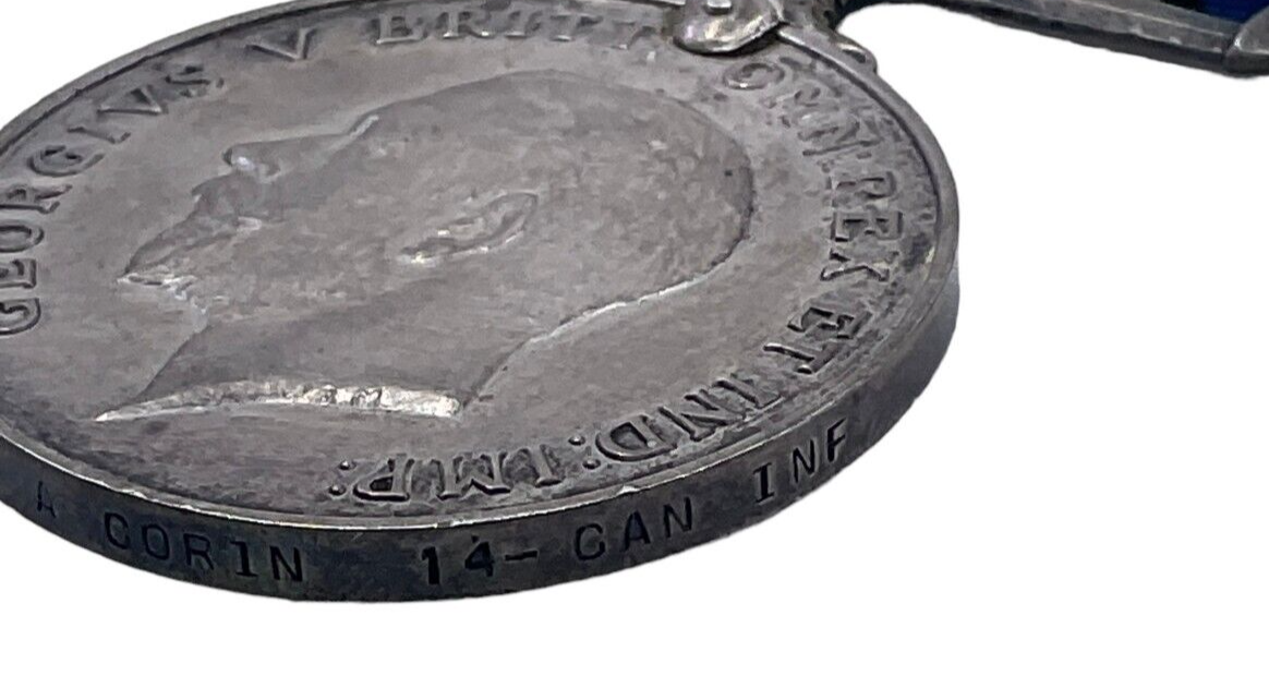 This unique and historically significant collection features a pair of medals awarded to the Corin brothers, who bravely served in the Canadian Expeditionary Force (CEF) during World War I. Representing both the 14th and 4th Battalions, these medals honor the valor and sacrifice of the brothers, tragically noted as casualties of the Great War. The set provides a poignant glimpse into the personal heroism and the broader narrative of Canada’s military contributions during WWI. Accompanying the medals is detailed research, which sheds light on the brothers’ military service, battalion engagements, and personal stories. This comprehensive collection not only commemorates the bravery of the Corin brothers but also serves as a valuable resource for historians and collectors deeply interested in the period. An evocative tribute to courage and sacrifice, this medal group is a testament to the Canadian soldiers’ legacy in World War I.