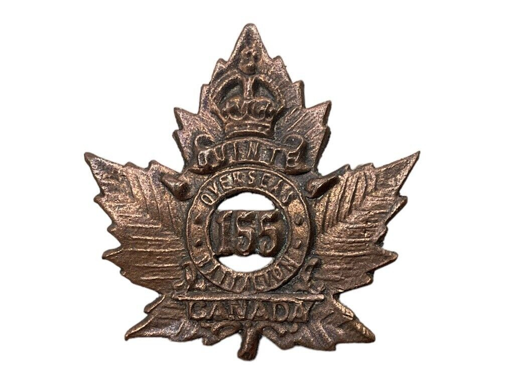 The WW1 Canadian CEF 155th Battalion Collar Insignia Single 2 is a historic military relic from the First World War, representing the 155th (Quinte) Battalion, part of the Canadian Expeditionary Force (CEF). This collar insignia, a single piece, showcases intricate detail and craftsmanship, emblematic of the pride and identity of the battalion members. Serving as a symbol of the bravery and dedication of Canadian soldiers, it would have been worn on the uniform collar, denoting affiliation and fostering a sense of unity and esprit de corps among the troops. Collectors and historians highly value such insignias, as they offer a tangible connection to the soldiers who served in significant military campaigns. The piece encapsulates the valor and heritage of Canada’s military past, making it a cherished artifact for enthusiasts of WWI memorabilia and Canadian military history.