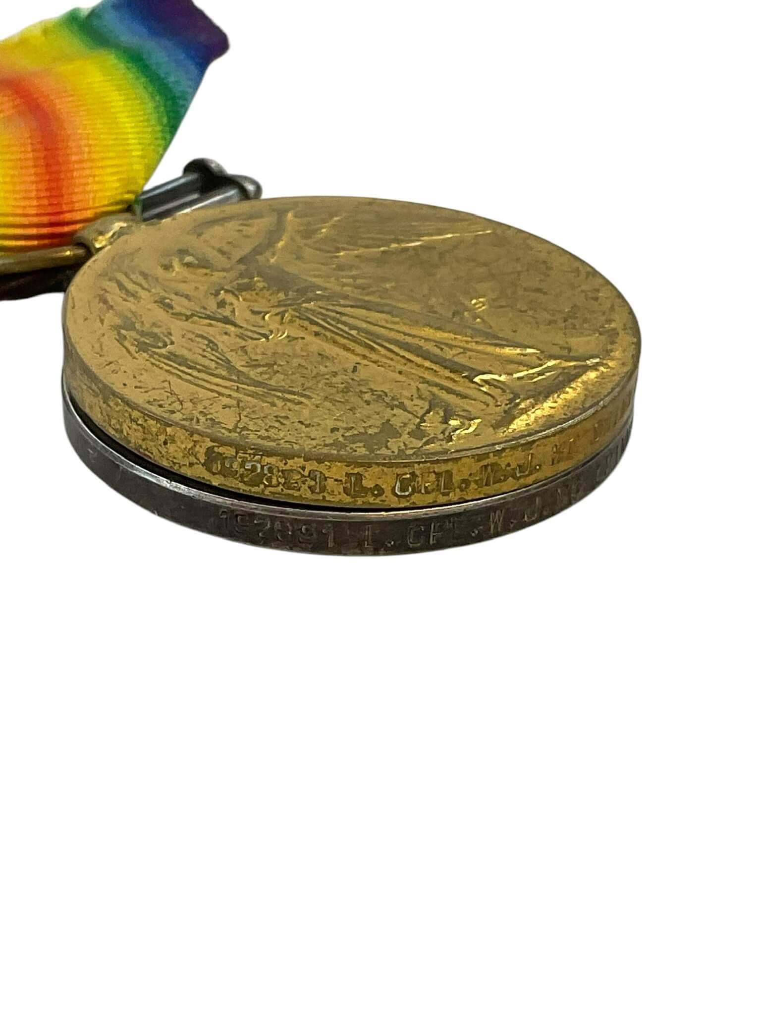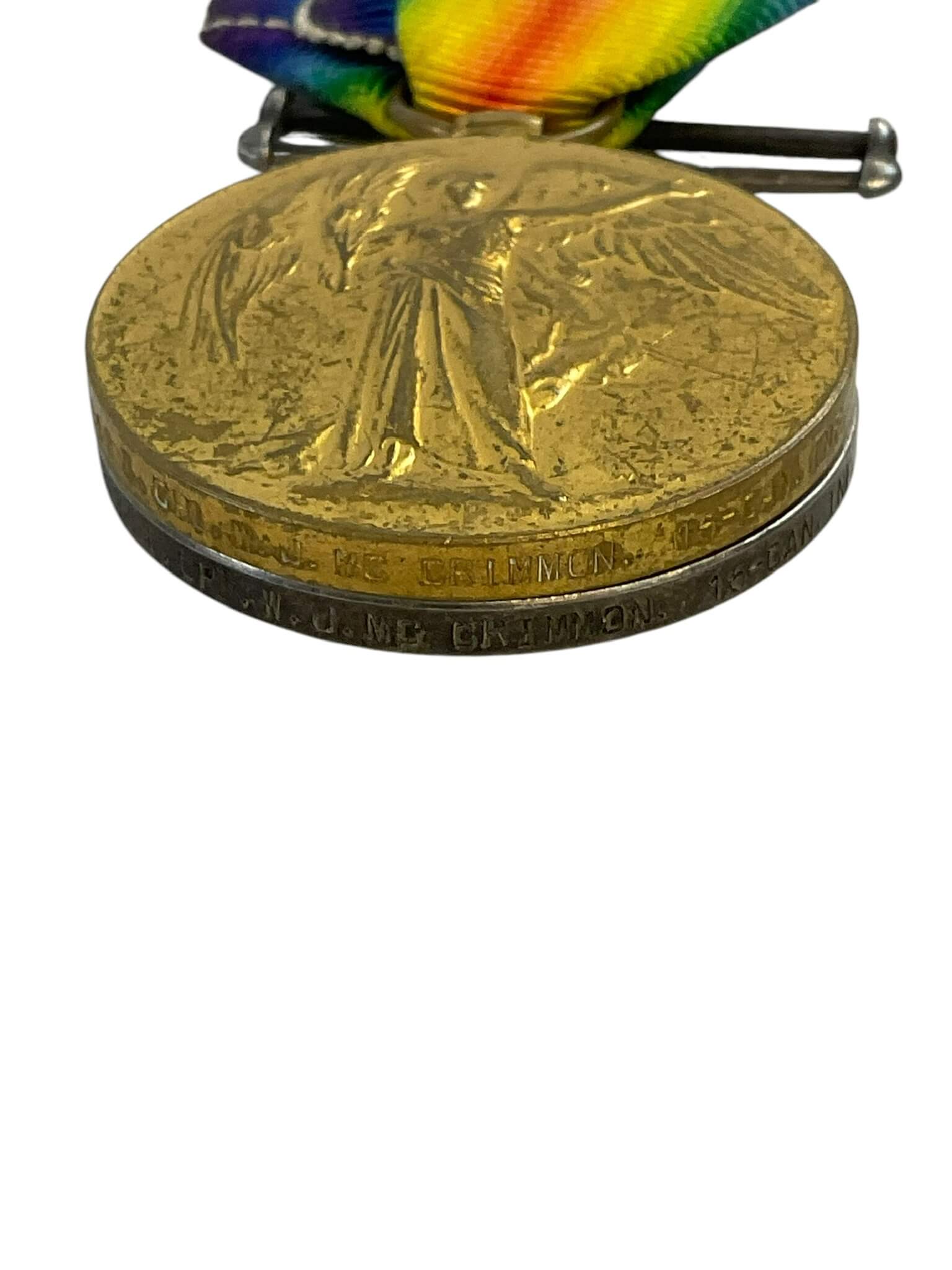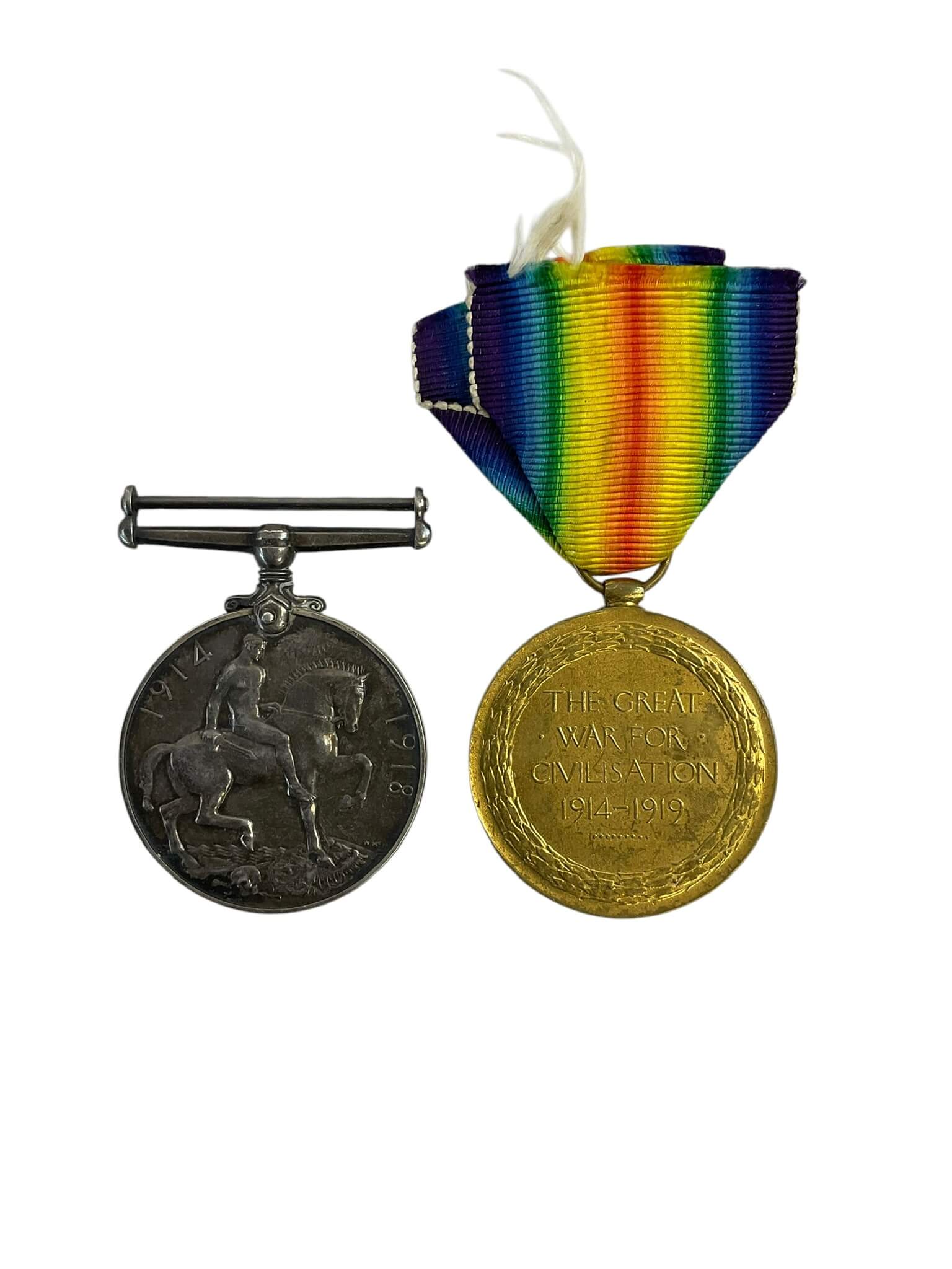 This collection features two full-size medals awarded to members of the WW1 Canadian CEF 15th Battalion. The Battalion, also known as the 48th Highlanders, was an integral part of Canada’s military participation in World War I. The medal pair represents a significant piece of Canadian military history. One medal displays the image of King George V, signifying the period of his reign during the war, while the second medal signifies the soldier’s voluntary service overseas. Both medals are made from silver and are attached to a multi-colored ribbon, representing the diverse theaters of war where the 15th Battalion served. This set is a must-have for any military history enthusiast and a poignant tribute to Canada’s role in the Great War.