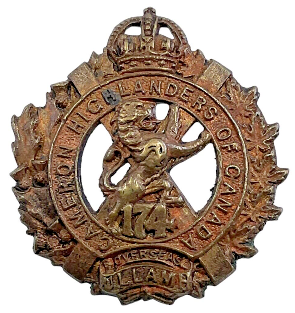 The ‘WW1 Canadian CEF 174th Battalion Collars Insignia Single’ is a distinguished military artifact from the Great War, representing the proud legacy of the 174th Battalion of the Canadian Expeditionary Force. This single collar insignia piece embodies the courage and dedication of Canadian soldiers who served valiantly during World War I. Made with meticulous craftsmanship, the insignia features emblematic symbols and detailed design characteristics unique to the 174th Battalion, making it a highly prized collectible for military historians and enthusiasts alike. Measuring appropriately for collar attachment, this authentic piece not only holds historical significance but also serves as a poignant reminder of the bravery and sacrifice of the men who fought for peace over a century ago. Ideal for collectors, this collar insignia is an evocative tribute to Canada’s rich military heritage and the enduring legacy of its soldiers.