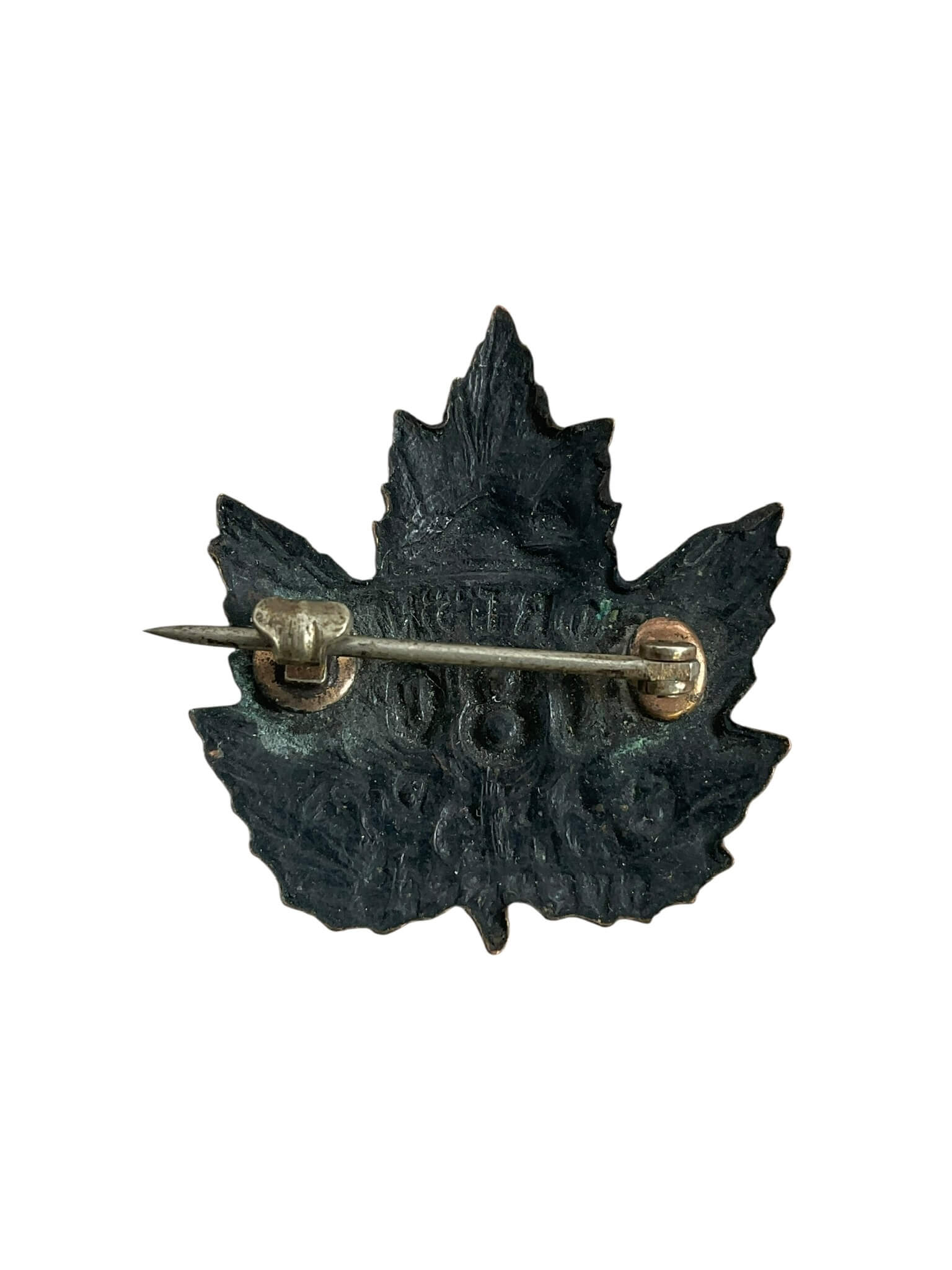 This vintage piece is an authentic WW1 Canadian CEF 180th Battalion Toronto Sportsmen Collar Insignia Single. The 180th Battalion, also known as the “Sportsmen Battalion,” was a unit in the Canadian Expeditionary Force during the First World War. Based in Toronto, the battalion was composed mainly of athletes. This collar insignia, a unique memento of that era, features the intricate and detailed design that was characteristic of such military paraphernalia. The design is made even more special with the inclusion of the Sportsmen’s distinct emblem. Made from durable, high-quality material, this insignia has been preserved in excellent condition. It’s more than a simple military collectible; it’s a piece of history, a symbol of the bravery and camarity of the men who served in the Great War. This is truly a must-have for historians, collectors, or those who appreciate the rich military heritage of Canada.