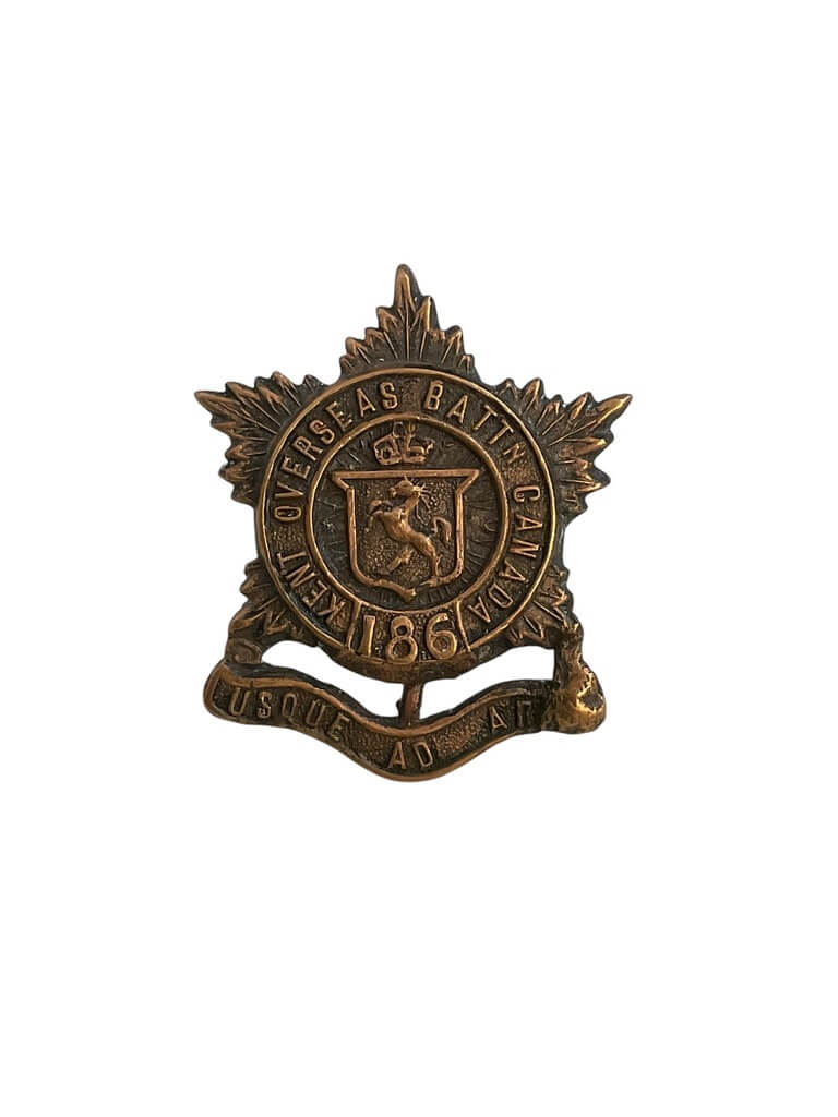 This WW1 Canadian CEF 186th Battalion Collar Insignia Single is a piece of military history that represents the valor and dedication of the Canadian Expeditionary Force during World War I. Made of fine quality brass, this insignia is in excellent condition, considering its age and historical significance. The detailed design features the battalion’s number ‘186’ surrounded by a wreath, a symbol of honor and victory. The backside features a latching system, authentic to the period, for secure attachment to the uniform collar. This piece is not only a rare collector’s item but also a tribute to the brave soldiers who served in the 186th Battalion. Owning this insignia is akin to holding a piece of Canada’s military heritage. It would be a valuable addition to any collection or could serve as a thoughtful gift for any military history enthusiast.