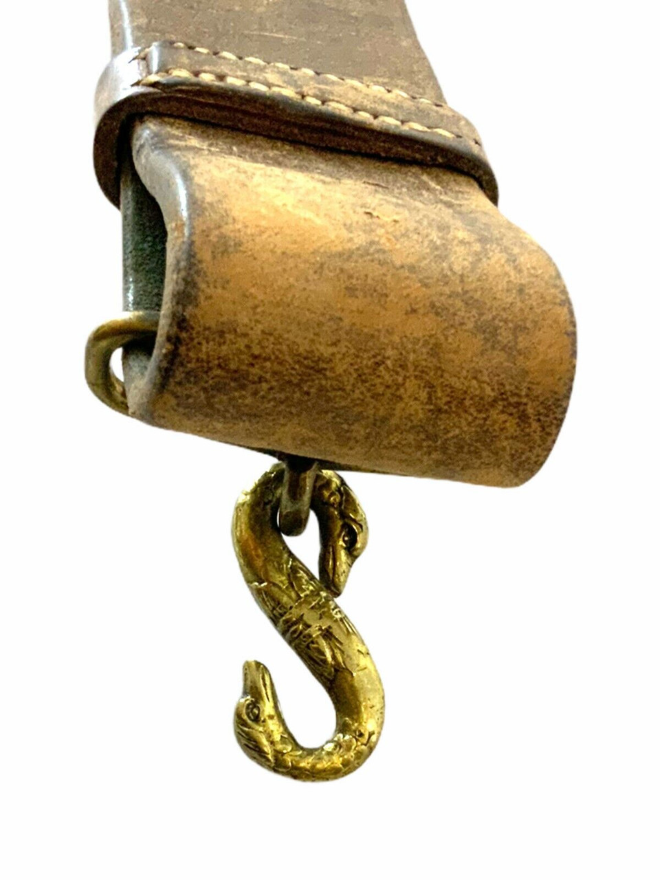 A used WW1 Canadian CEF 1917 Dated Officers Leather Belt & Sword Hangers PLDG & RCHA Marked, 33 Inches