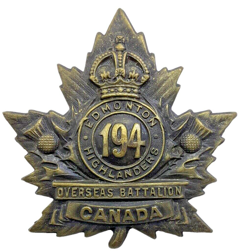 WW1 Canadian CEF 194th Battalion Cap Badge The WW1 Canadian CEF 194th Battalion Cap Badge is a distinctive military insignia representing the 194th Battalion of the Canadian Expeditionary Force. This badge was worn by soldiers as part of their uniform during World War I, symbolizing their dedication and service. The badge is intricately designed, often featuring elements such as the maple leaf, national emblems, and the battalion’s number, illustrating a sense of national pride and identity. The 194th Battalion, also known as the Edmonton Highlanders, was part of Canada’s significant contribution to the war effort, known for its bravery and commitment. Collectors and historians highly value these cap badges, as they embody the rich military heritage and the sacrifices made by Canadian soldiers. The WW1 Canadian CEF 194th Battalion Cap Badge serves not only as a piece of military memorabilia but also as a poignant reminder of Canada’s role in the Great War.