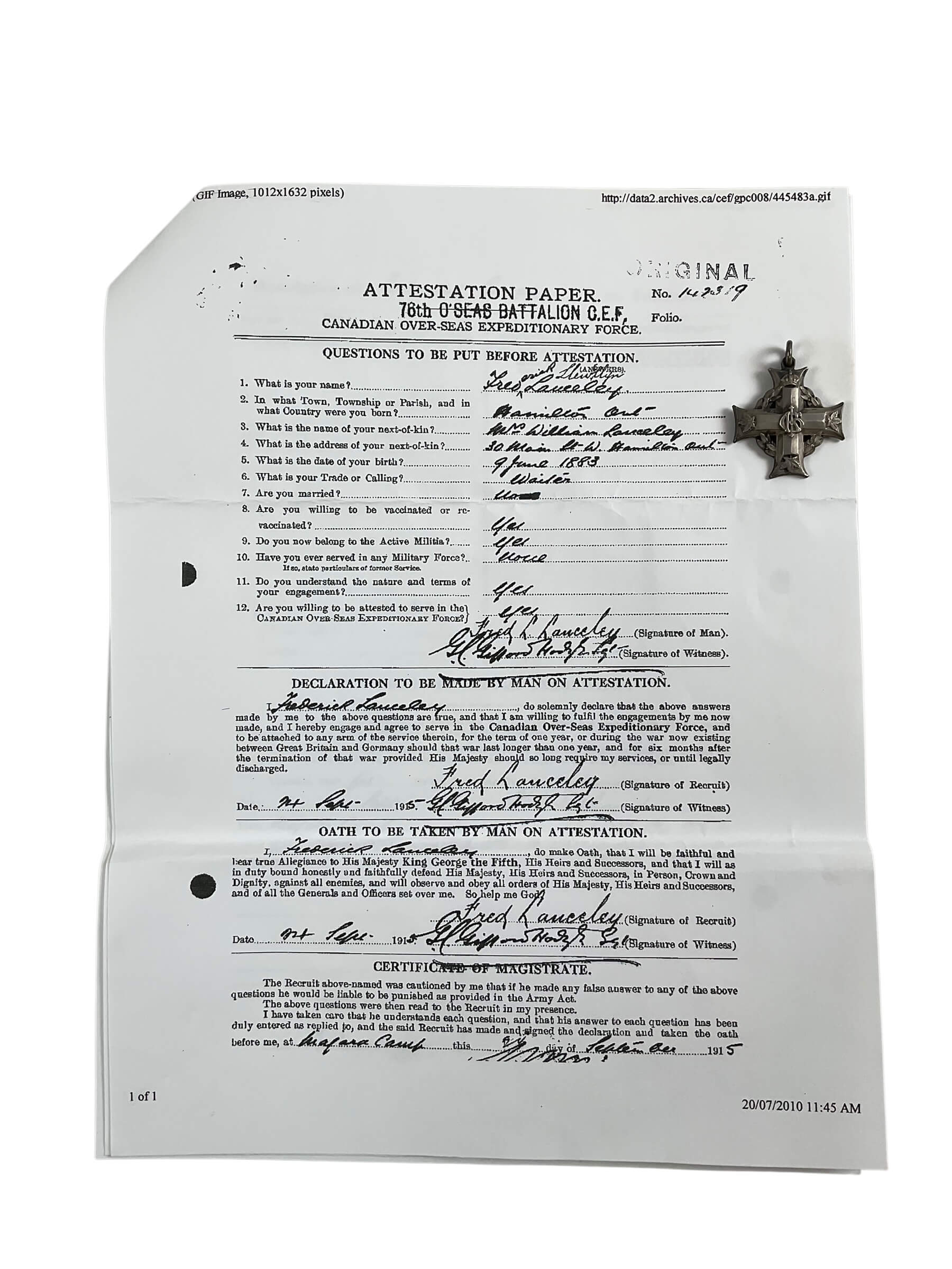 The WW1 Canadian CEF 1st Battalion Memorial Cross is a poignant symbol of bravery and sacrifice, dedicated to the valiant soldiers who fought during the First World War. It was bestowed upon the families of the fallen members of the Canadian Expeditionary Force’s (CEF) 1st Battalion as a token of their service to the nation. Crafted with intricate detailing, this cross embodies the respect and honor accorded to these brave men. It features the emblem of King George V, signifying the period of the monarchy during the war. The name and regimental number of the deceased soldier are typically engraved on the cross, personalizing the tribute. This memorial cross serves as a tangible reminder of the immense courage displayed by the 1st Battalion and their ultimate sacrifice for their country.
