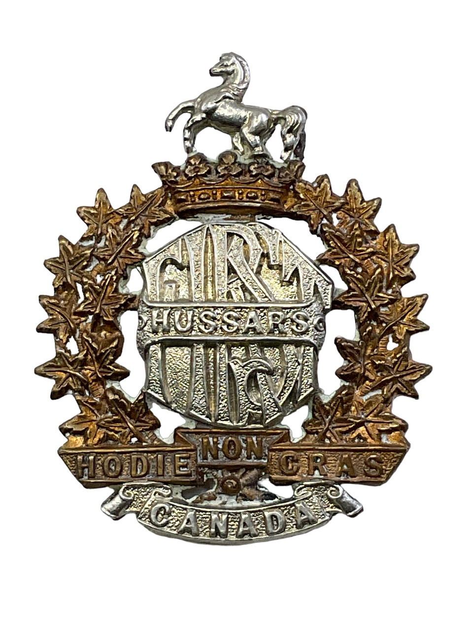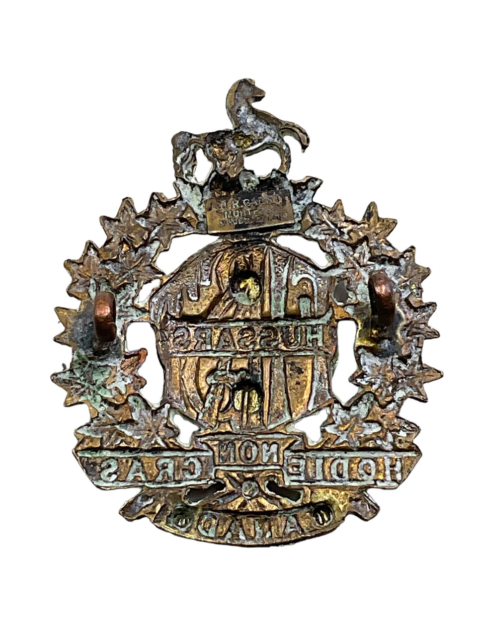 WW1 Canadian CEF 1st Hussars Officers Cap Badge JR Gaunt Plate