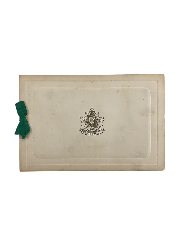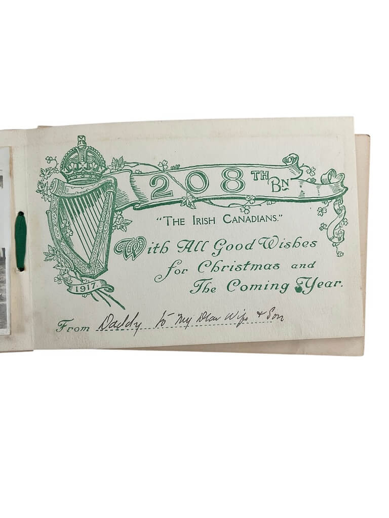 This is a unique and historic WW1 Canadian CEF 208th Battalion Christmas Card from the 5th Platoon. It serves as a tangible link to Canada’s rich military history, specifically from the time of the First World War. The 208th Battalion, also known as the Irish Canadian Rangers, was an infantry battalion of the Canadian Expeditionary Force. The card, filled with heartfelt greetings and well-wishes, provides a poignant reminder of the human spirit and camaraderie that endured even during the toughest times of war. The item is in excellent condition, retaining its original color and integrity. It is an extraordinary piece of memorabilia for collectors, historians, or anyone with an interest in military history. This Christmas card is not just a piece of paper, but a piece of history that tells a story of bravery, resilience, and brotherhood.