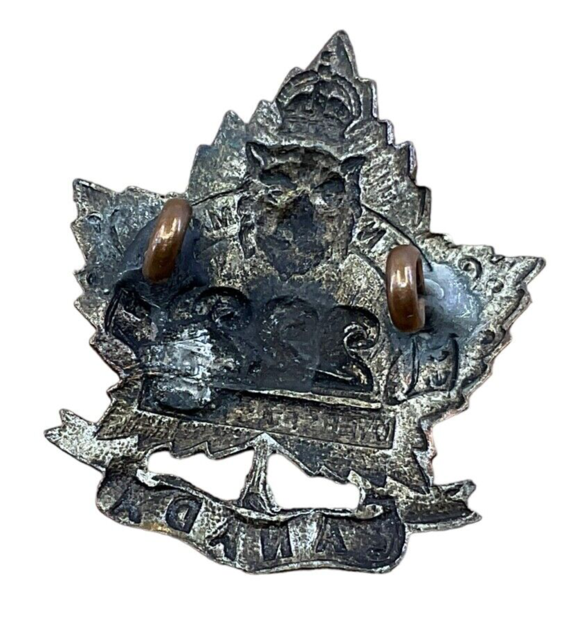 The WW1 Canadian CEF 222nd Battalion Collar Badge Insignia Single is a remarkable piece of military history, reflecting the bravery and dedication of Canadian soldiers during the First World War. This insignia marks the identity of the 222nd Battalion of the Canadian Expeditionary Force (CEF), a unit that played a crucial role in the Great War. Crafted with detailed precision, this collar badge is adorned with symbolic elements that represent the battalion’s heritage and valor. Typically featuring intricate designs such as regimental colors, crests, or mottos, this badge was worn proudly on the soldiers’ uniforms. Owning such an insignia is not just acquiring a collectible, but also preserving a fragment of the resilience and patriotism displayed by those who served. This single collar badge stands as a silent testament to the soldiers’ unwavering spirit in the face of adversity. Perfect for collectors, historians, or anyone with a keen interest in military memorabilia.