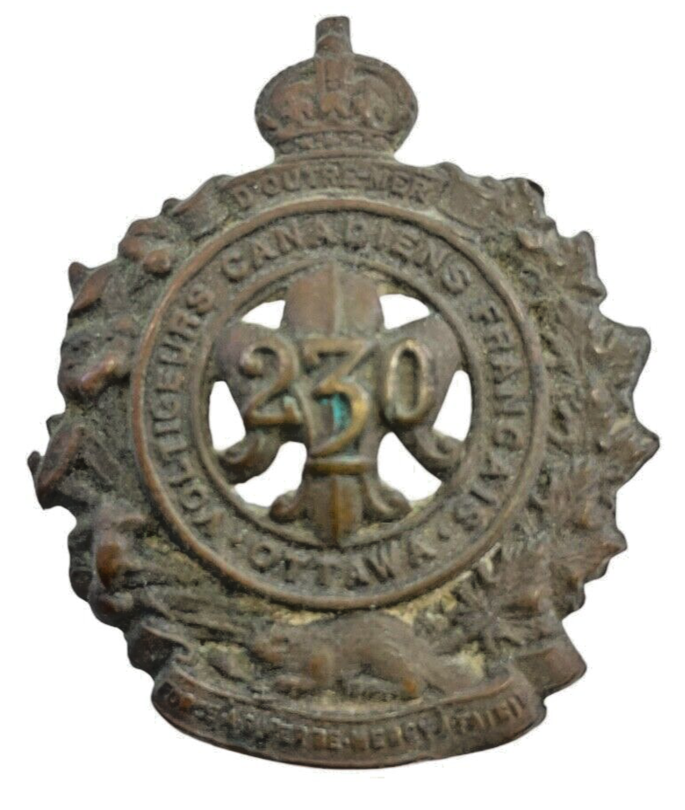 The “WW1 Canadian CEF 230th Battalion Collar Insignia Single” is a distinctive piece of military history from the First World War. This rare collar insignia represents the 230th Battalion of the Canadian Expeditionary Force (CEF), an integral part of Canada’s contribution to the war effort. Crafted with attention to detail, the insignia would have been worn on a soldier’s uniform collar, symbolizing their unit and fostering a sense of identity and pride. Made from durable materials, this single piece would serve as an ideal collectible for military historians and enthusiasts. Its intricate design and historical significance provide a tangible connection to the soldiers who bravely served during one of history’s most pivotal conflicts. Whether displayed in a collection or used in educational contexts, this WW1 Canadian CEF 230th Battalion Collar Insignia Single stands as a testament to the bravery and dedication of Canadian forces during the Great War.