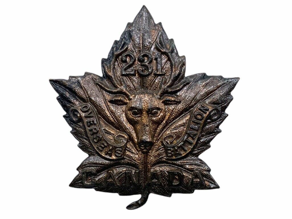 WW1 Canadian CEF 231st Battalion Collar Insignia Single The WW1 Canadian CEF 231st Battalion Collar Insignia Single is a distinguished military artifact from the Great War. This piece represents the 231st Battalion of the Canadian Expeditionary Force, an integral unit formed during World War I. Made with intricate craftsmanship, the insignia would have adorned the collar of a soldier’s uniform, symbolizing their affiliation and pride in serving the battalion. The design typically features unique motifs and emblems reflective of the battalion’s identity and heritage. Collectors and historians value these insignias not just as memorabilia, but as tangible links to the personal stories and bravery of Canadian soldiers who fought valiantly in the early 20th century. This particular insignia, being a single piece, offers a rare glimpse into the military regalia of the time, making it a treasured keepsake for those passionate about military history and the legacy of Canada’s involvement in WW1.