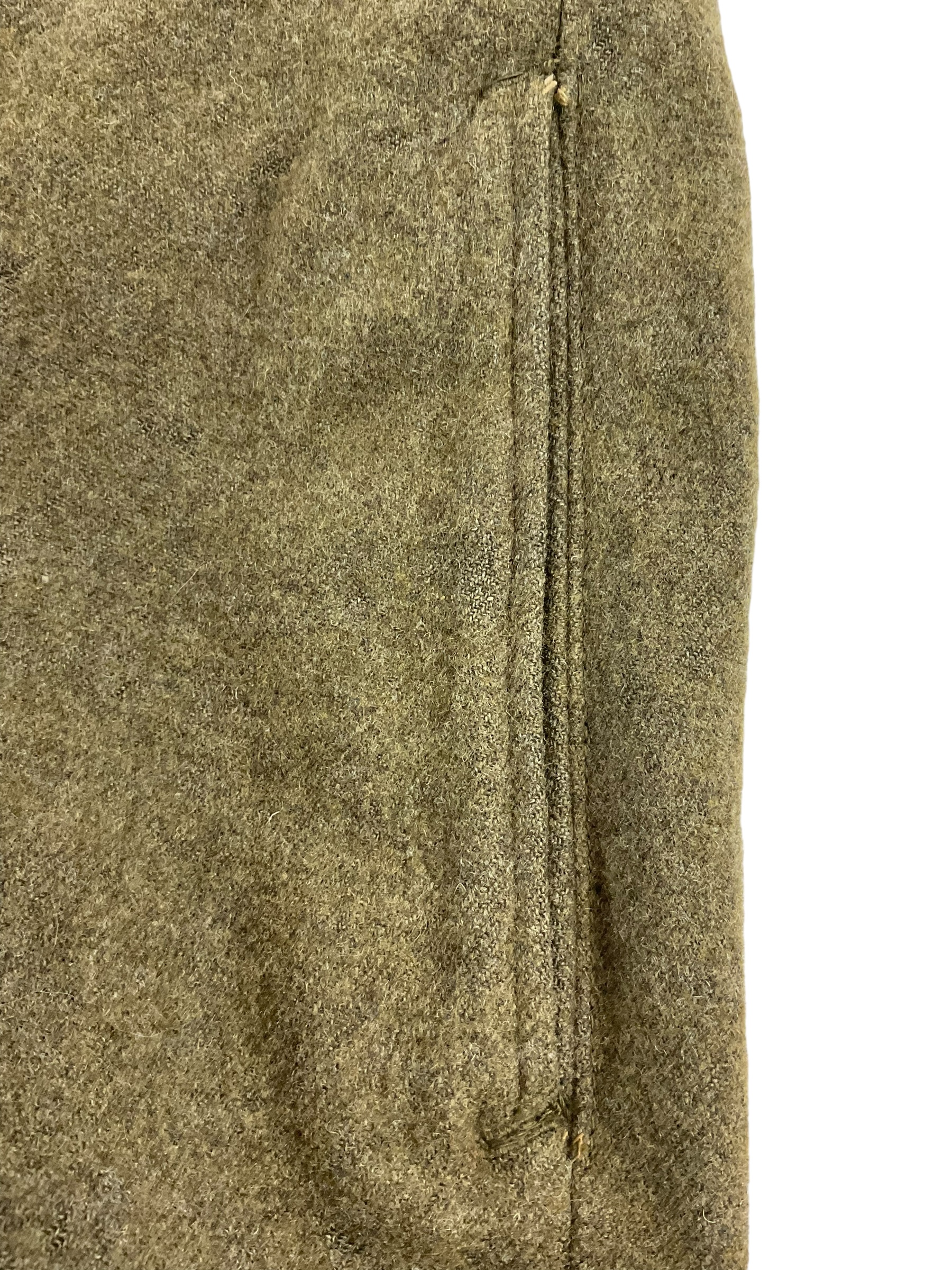 This authentic WW1 Canadian CEF 24th Battalion ensemble features a striking 5-button tunic, paired with straight leg trousers and a distinct trench cap. The 5-button tunic is tailored to replicate the original military specifications, embodying the durability and style synonymous with the Canadian Expeditionary Force. The straight leg trousers offer a comfortable fit while maintaining the historical accuracy of the early 20th-century military attire. The ensemble is completed with a trench cap, custom crafted on 5th Avenue in New York, showcasing premium craftsmanship and attention to detail. This historically rich uniform is perfect for collectors, reenactors, or history enthusiasts who appreciate the legacy and valor of the Canadian soldiers from World War I. Experience an authentic piece of military history with this meticulously recreated 24th Battalion outfit.