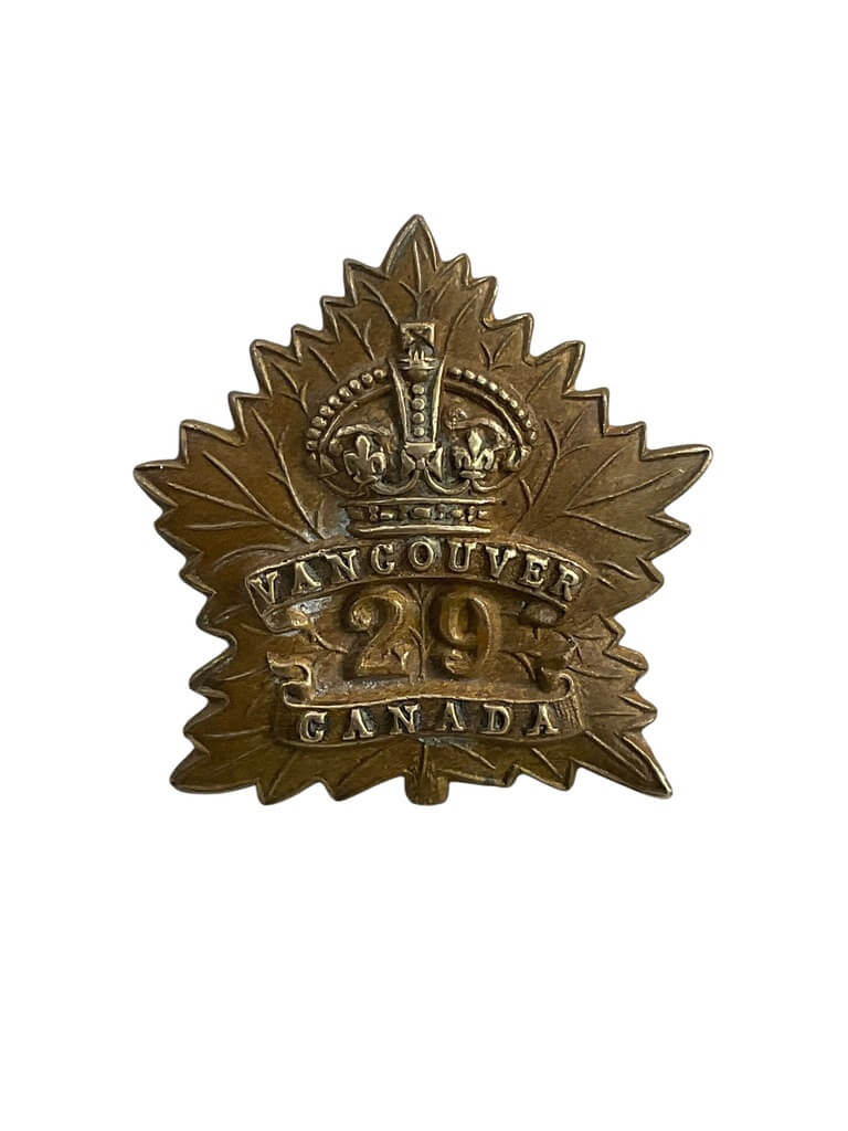 WW1 Canadian CEF 29th Battalion Vancouver Collar Insignia Single