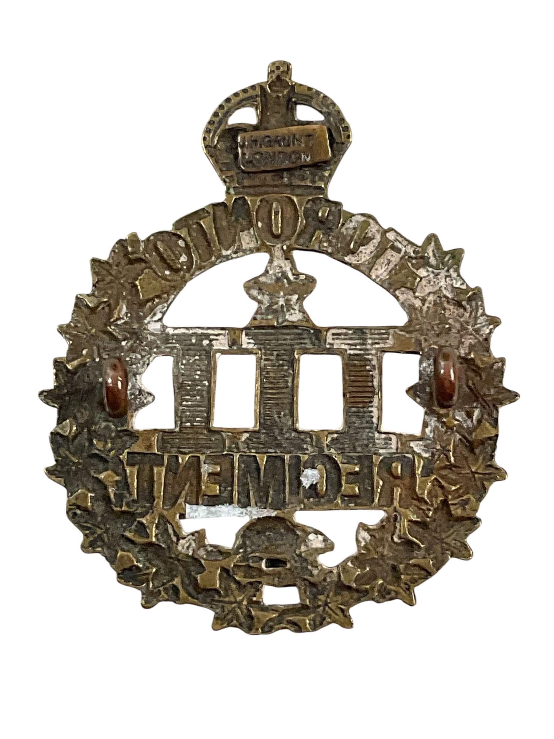 The WW1 Canadian CEF 3rd Battalion Cap Badge is an authentic piece of military insignia issued to members of the 3rd Battalion, Canadian Expeditionary Force during the First World War. Formed as part of the CEF’s initial overseas contingent in 1914, the 3rd Battalion, also known as the Toronto Regiment, served on the Western Front as part of the 1st Canadian Division. The cap badge is typically constructed of brass and features a maple leaf design, prominently displaying the number “3” at its center, along with “Canada” and “Overseas Battalion,” denoting its unit and service. The badge was worn on the peaked cap as part of official military dress, identifying the wearer’s battalion affiliation. It measures approximately 40mm by 45mm. Such badges are valued for their historical significance and connection to Canada’s contribution to the First World War. This item provides insight into Canadian military organization and regimental identity during the conflict.