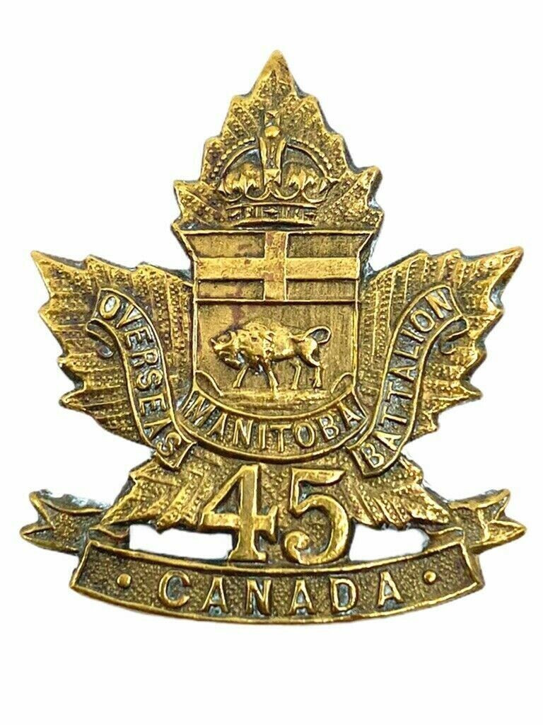 The WW1 Canadian CEF 45th Battalion Collar Single is a historical collectible from the Great War era, specifically representing the 45th Battalion of the Canadian Expeditionary Force. This unique piece is a collar badge, signifying the distinguished service of its wearer. However, it must be noted that this particular item is missing its lugs, which are the attachment points typically used to affix the badge to a uniform. Despite this imperfection, the badge remains a significant artifact, offering a tangible connection to Canada’s military heritage and the sacrifices made during World War I. Collectors and historians alike will appreciate its value as a testament to the bravery and dedication of the soldiers who once donned such emblems. This badge serves not only as a collectible item but also as a poignant reminder of the historical impact of the 45th Battalion and their role in shaping Canadian history.