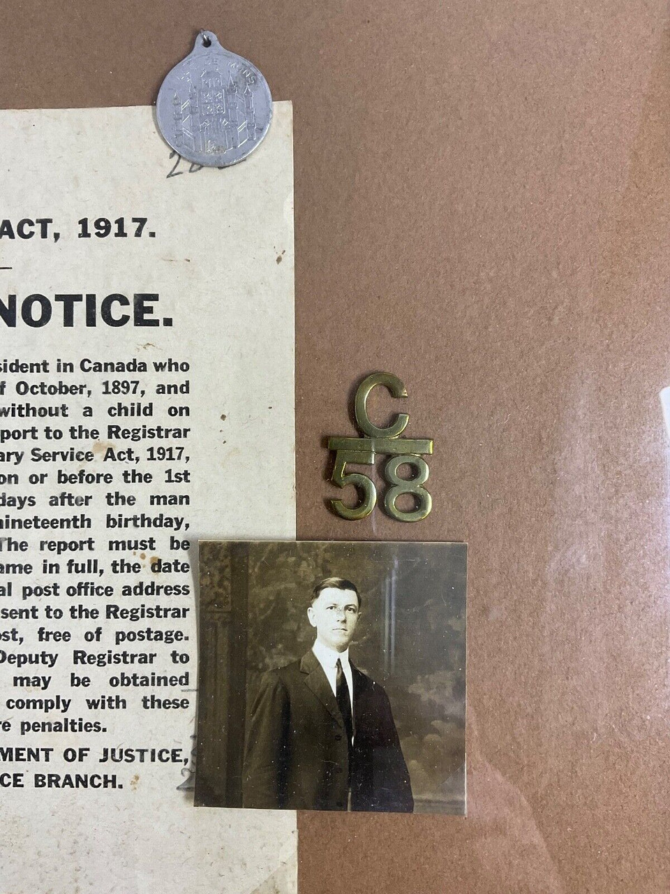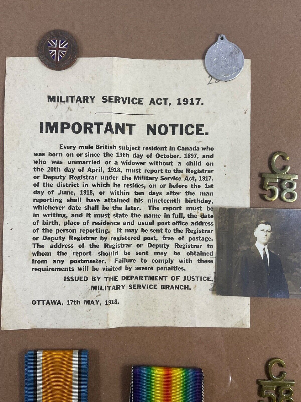 WW1 Canadian CEF 58th Battalion VOAKES Medal & Insignia Group Framed