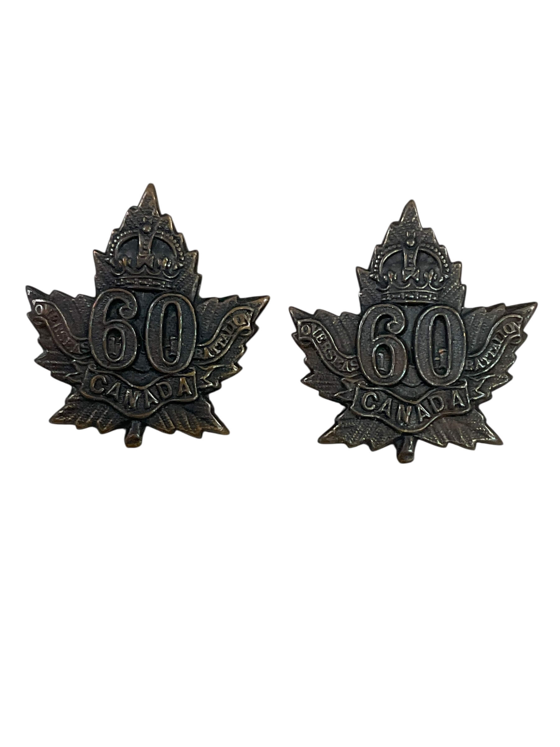 WW1 Canadian CEF 60th Battalion Collars Insignia Pair