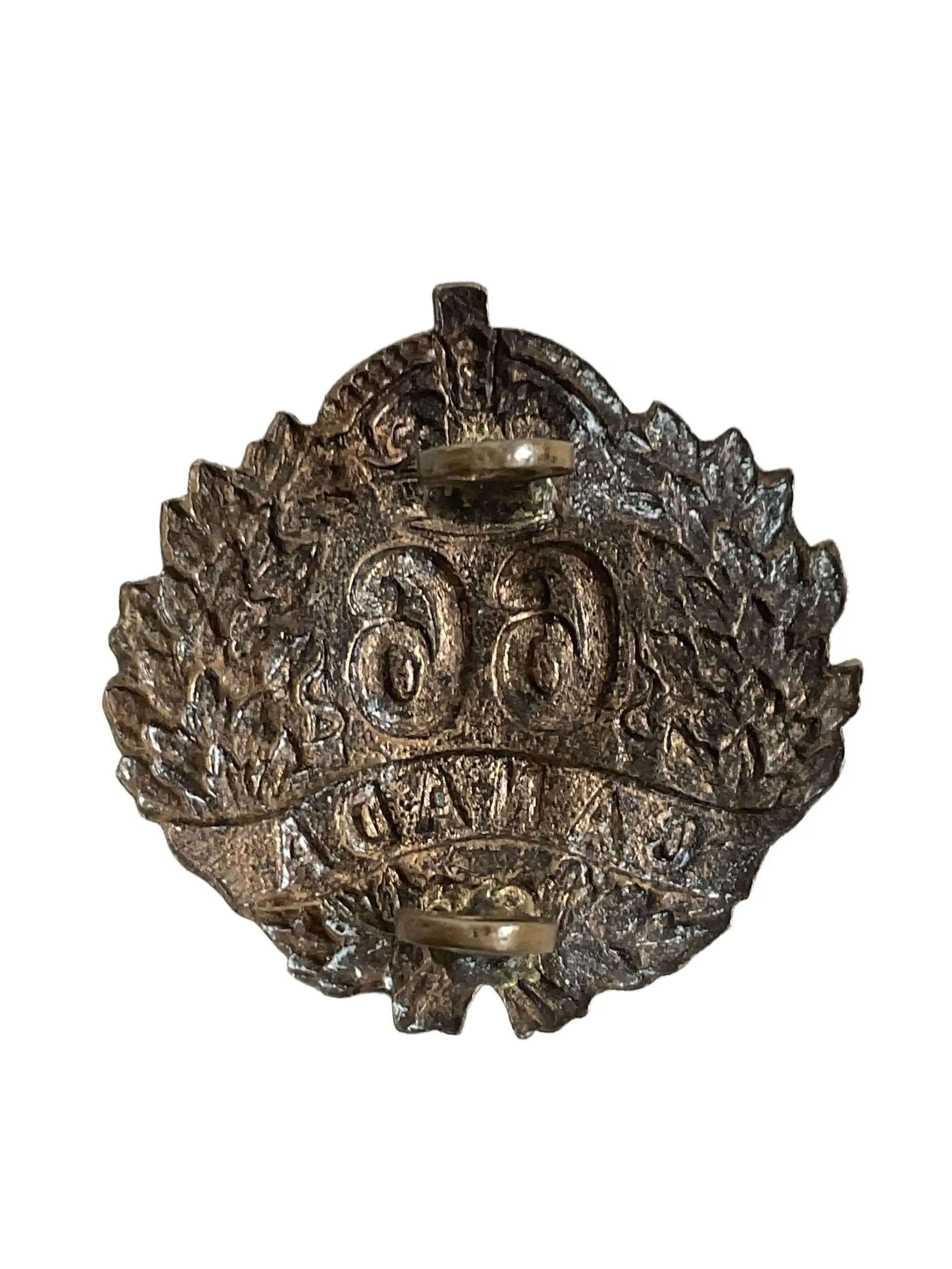 The WW1 Canadian CEF 66th Battalion Collar Insignia is a single metal badge issued to members of the 66th Battalion, Canadian Expeditionary Force, during the First World War. The 66th Battalion, also known as the “Edmonton Guards,” was authorized in 1915 and recruited primarily in Alberta, Canada. Collar insignia such as this example were worn on the uniform collars to designate regimental affiliation and were an essential part of military dress regulations during the period. The badge typically features the battalion number, regimental motifs, and a maple leaf—symbolizing its Canadian origin—rendered in stamped or die-cast metal, often with original lugs or fasteners on the reverse. Collectors and historians value these items for their association with Canadian military history and the individuals who served overseas with the CEF. Size, design features, and maker’s marks, if present, assist in authentication and dating of the piece.