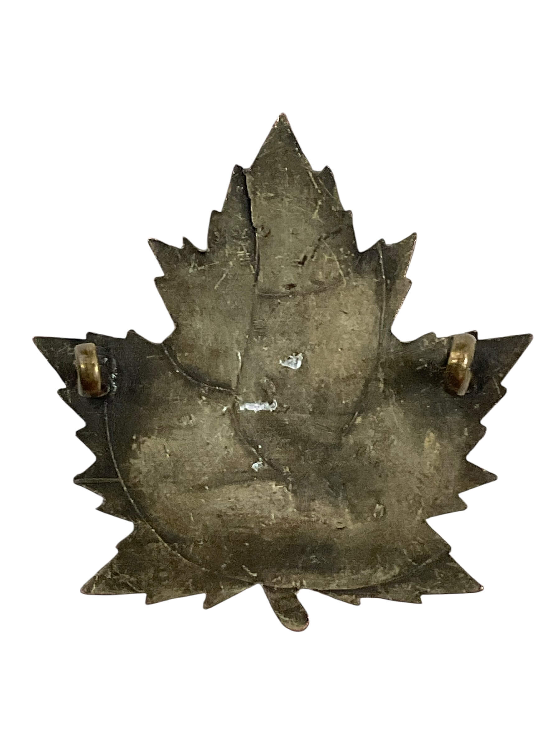 The WW1 Canadian CEF 6th CMR Cap Badge is an original insignia issued to members of the 6th Canadian Mounted Rifles during the First World War. Formed in 1914 as part of the Canadian Expeditionary Force (CEF), the 6th CMR was involved in various operations on the Western Front before being absorbed by infantry units in 1916. The cap badge features a maple leaf design, a distinctive symbol of Canadian military identity, with a central numeral “6” above the initials “CMR.” The badge is typically constructed from brass and was worn on the service dress cap to denote regimental affiliation. Cap badges played an important role in fostering unit cohesion and providing identification on the battlefield. This artifact reflects both the heritage of the Canadian Mounted Rifles and the broader history of Canadian military service in World War I. The badge’s design and construction are consistent with Commonwealth military insignia of the era.