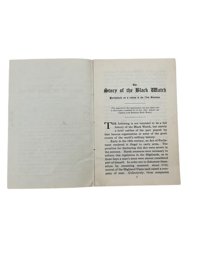 This compelling reference book presents an in-depth account of the WW1 Canadian CEF 73rd Battalion, known as the Black Watch. This used softcover edition is rich in historical detail, providing an informative narrative about the battalion’s significant role during World War 1. It delves into the trials, triumphs, and sacrifices made by these brave Canadian soldiers. The book is a must-read for military history enthusiasts, offering a deeper understanding of Canada’s contribution to the First World War. Its contents are meticulously researched, featuring historical accounts, personal stories, and strategic analysis that make the reader appreciate the complexity of wartime dynamics. Despite being a used book, it is in excellent condition, ensuring an unspoiled journey through pages of history. This book is a valuable addition to any history aficionado’s collection, offering a unique perspective on the Black Watch battalion. Total of 14 pages.