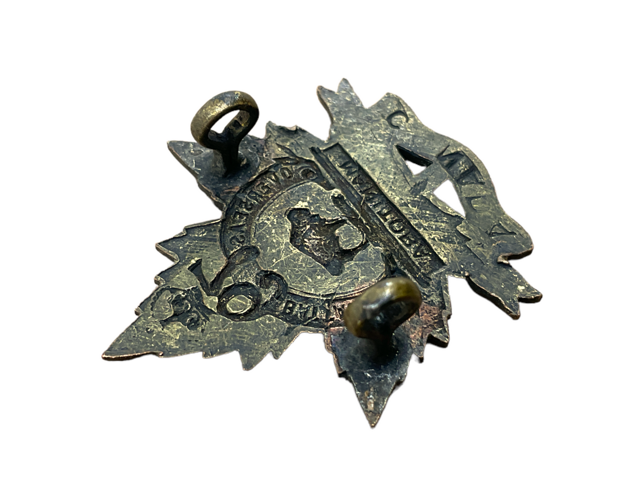 The WW1 Canadian CEF 79th Battalion Collar Badge is a significant artifact from Canada’s military history. This brass or white metal badge features intricate detailing that represents the pride and heritage of the 79th Battalion, part of the Canadian Expeditionary Force (CEF) during the First World War. The badge includes two intact lugs on the back, ensuring it can still be attached to a uniform or displayed securely. The 79th Battalion, also known as the Winnipeg Grenadiers, played a crucial role in several key battles on the Western Front. Owning this collar badge provides a tangible link to the bravery and sacrifice of Canadian soldiers during WWI. It’s a must-have for collectors and historians, offering a glimpse into the uniforms and regalia that symbolized Canada’s contribution to the Great War. This authentic piece is a tribute to the valor and dedication of the men who served in the 79th Battalion.