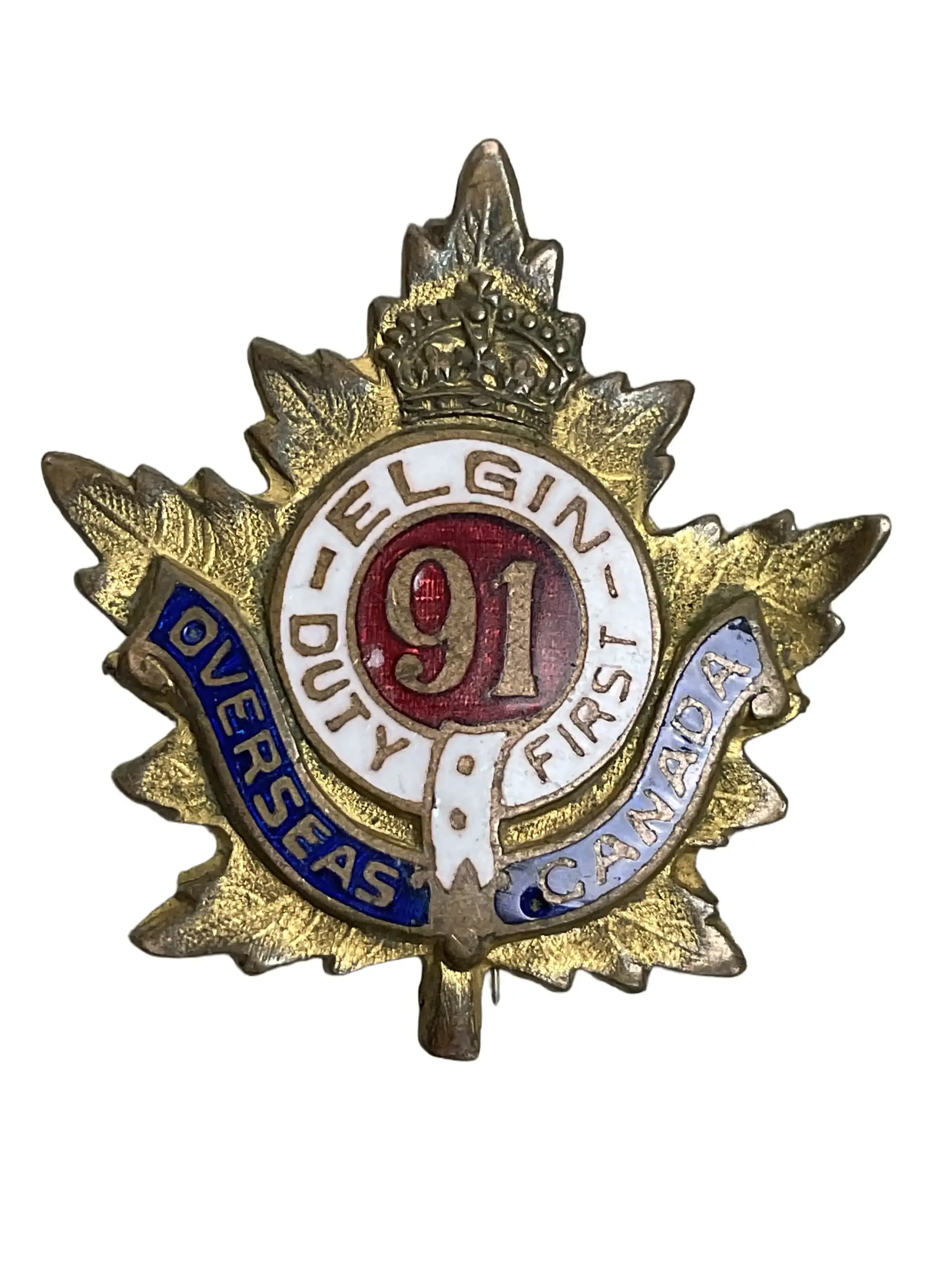 WW1 Canadian CEF 91st Battalion Sweetheart Lapel Pin