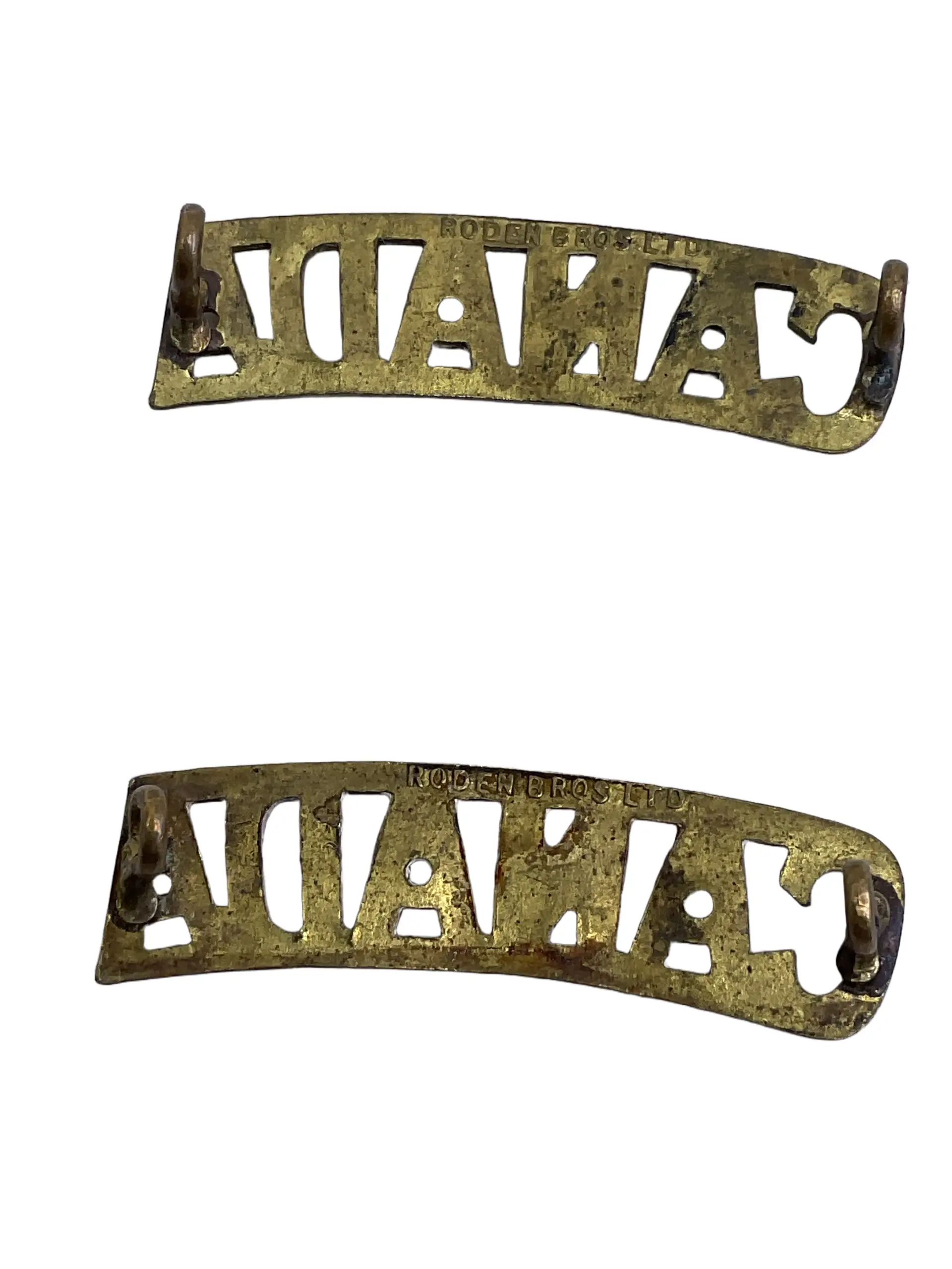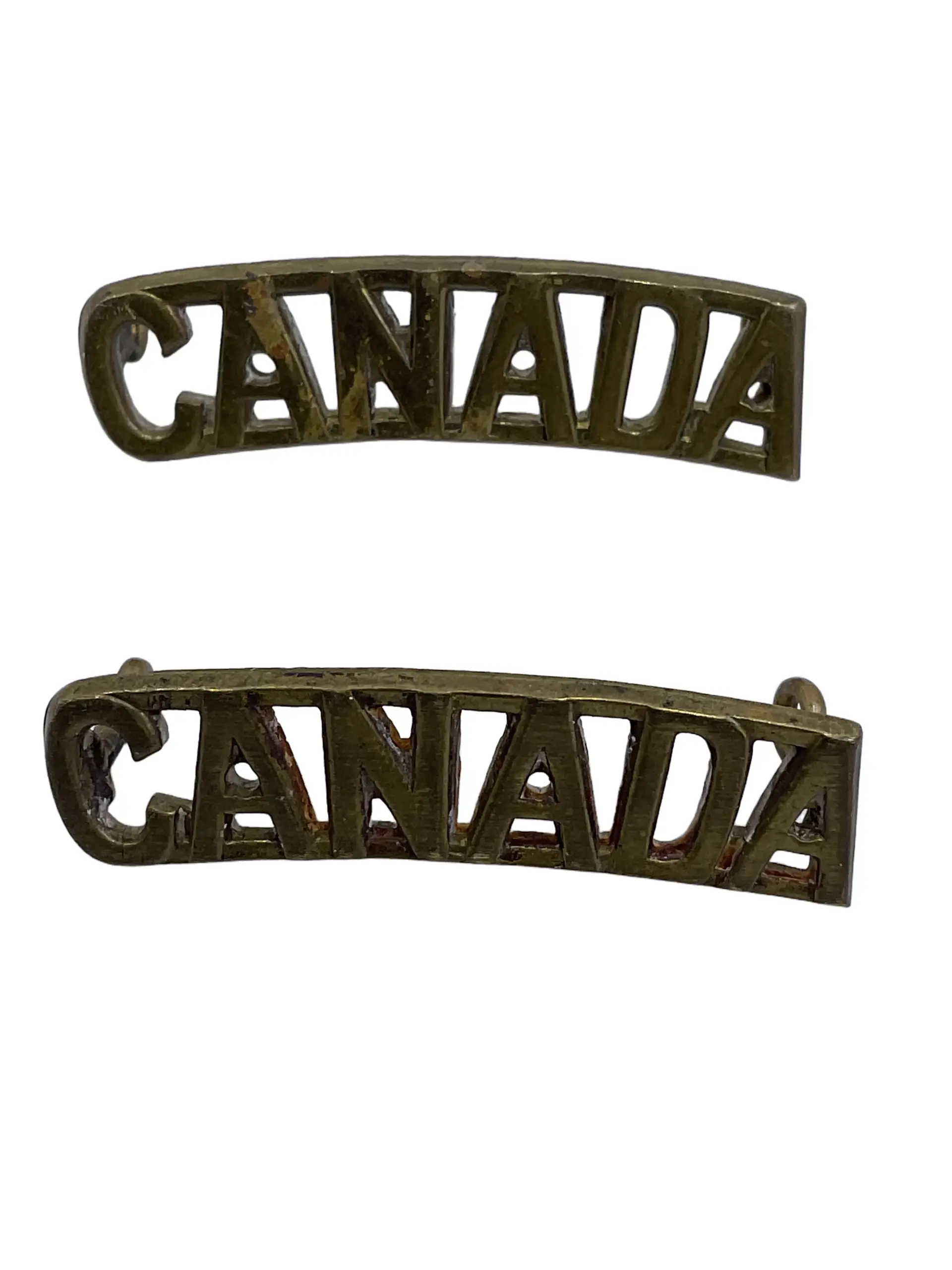 WW1 Canadian CEF CANADA Curved Shoulder Titles Insignia Pair