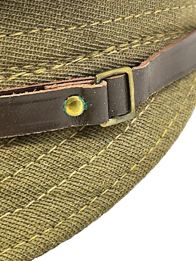 This rare and historically significant WW1 Canadian CEF CASC Army Service Corps Trench Cap is a remarkable piece of military memorabilia. Size 7, it features the distinct “broad arrow” mark that indicates military issue. This trench cap, worn by members of the Canadian Expeditionary Force’s Army Service Corps, provides an authentic glimpse into the life of a WW1 soldier. It is a testament to the bravery and sacrifice of those who served in the Great War. The cap’s design is both functional and emblematic, with a sturdy construction meant to withstand the harsh conditions of trench warfare. Collectors and history enthusiasts will appreciate the cap’s authentic detailing and its significant role in military history. This artifact not only represents Canadian military heritage but also serves as a poignant reminder of the broader historical narratives of World War I.