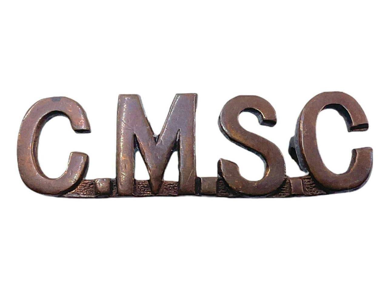 WW1 Canadian CEF CMSC Military Staff Clerks Shoulder Title Single This is a genuine artifact from World War I, representing the Canadian Expeditionary Force (CEF) and specifically designed for the Canadian Military Staff Clerks (CMSC). The shoulder title is a single piece, likely worn by military staff clerks who played a crucial role in the administrative and logistical operations during the war. Crafted with attention to detail, it features the specific abbreviation ‘CMSC’ that denotes its exclusive association with the clerical staff. Such pieces offer a rare glimpse into the organizational structure and the behind-the-scenes personnel who ensured the smooth functioning of military operations. Collectors and historians alike will value this item for its historical significance and craftsmanship, providing a tangible connection to Canada’s extensive military heritage during World War I. This shoulder title is not only a piece of military regalia but also a testament to the dedication and service of the oft-overlooked clerical workforce in wartime.