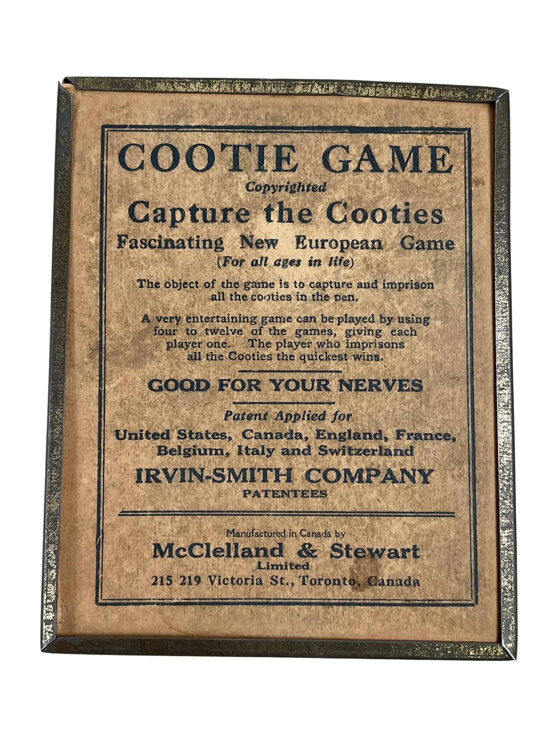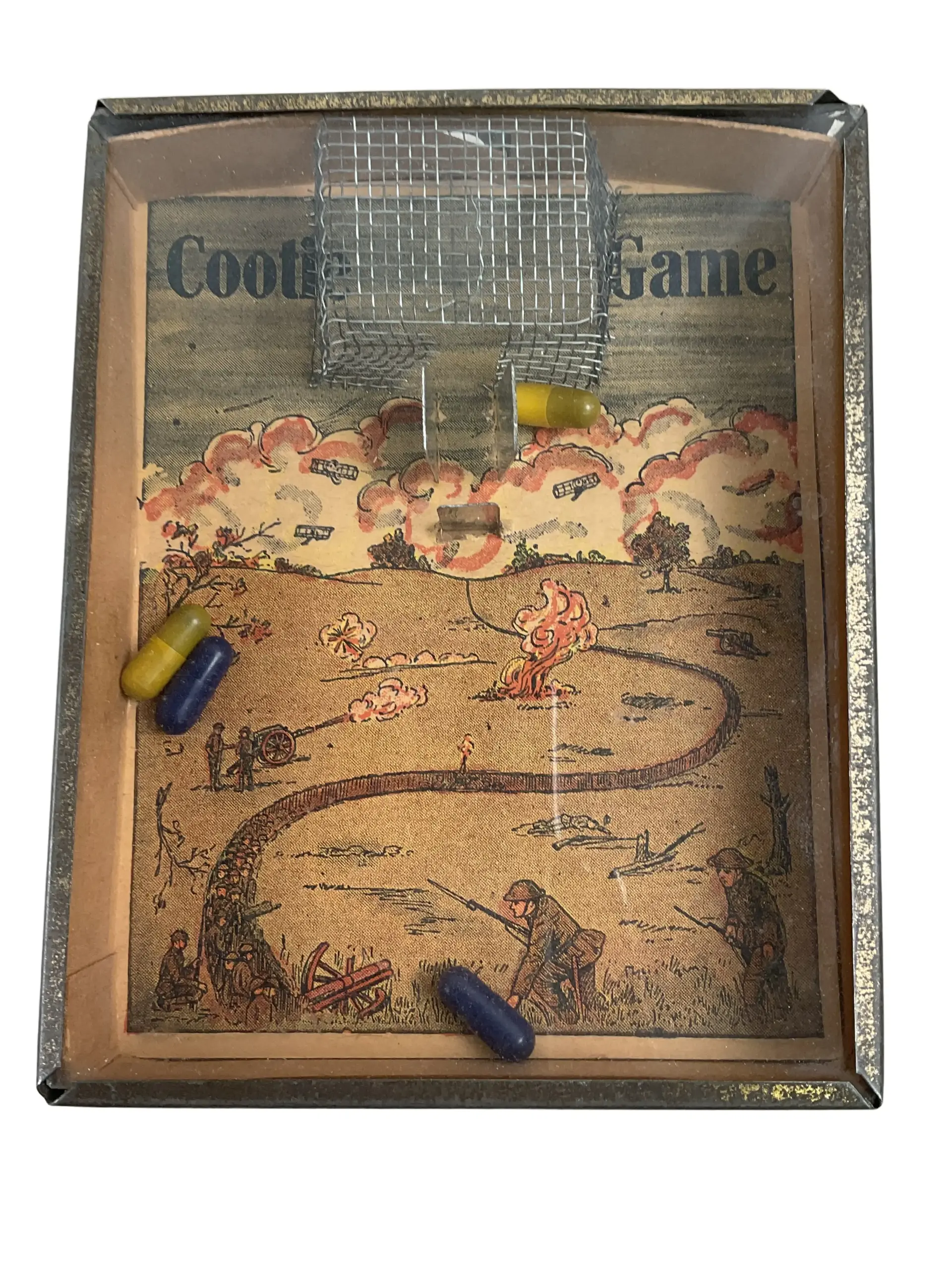 The WW1 Canadian CEF Cootie Game is a historical artifact associated with the Canadian Expeditionary Force during the First World War. This game features a small, portable design, typically consisting of printed cards or simple components. The term “cootie” was colloquial slang among soldiers for lice, a common problem in the trenches. The game’s objective was often to “catch” or eliminate the cooties, providing a brief form of entertainment and distraction for soldiers coping with harsh living conditions. As a period piece, the game reflects the everyday experiences and morale-boosting activities of Canadian troops during the conflict. Items such as this exemplify the improvisational nature of recreational activities among servicemen and are of particular interest to military collectors and historians. The WW1 Canadian CEF Cootie Game offers insight into the social history of the war and the adaptive ways soldiers addressed the challenges of trench life.