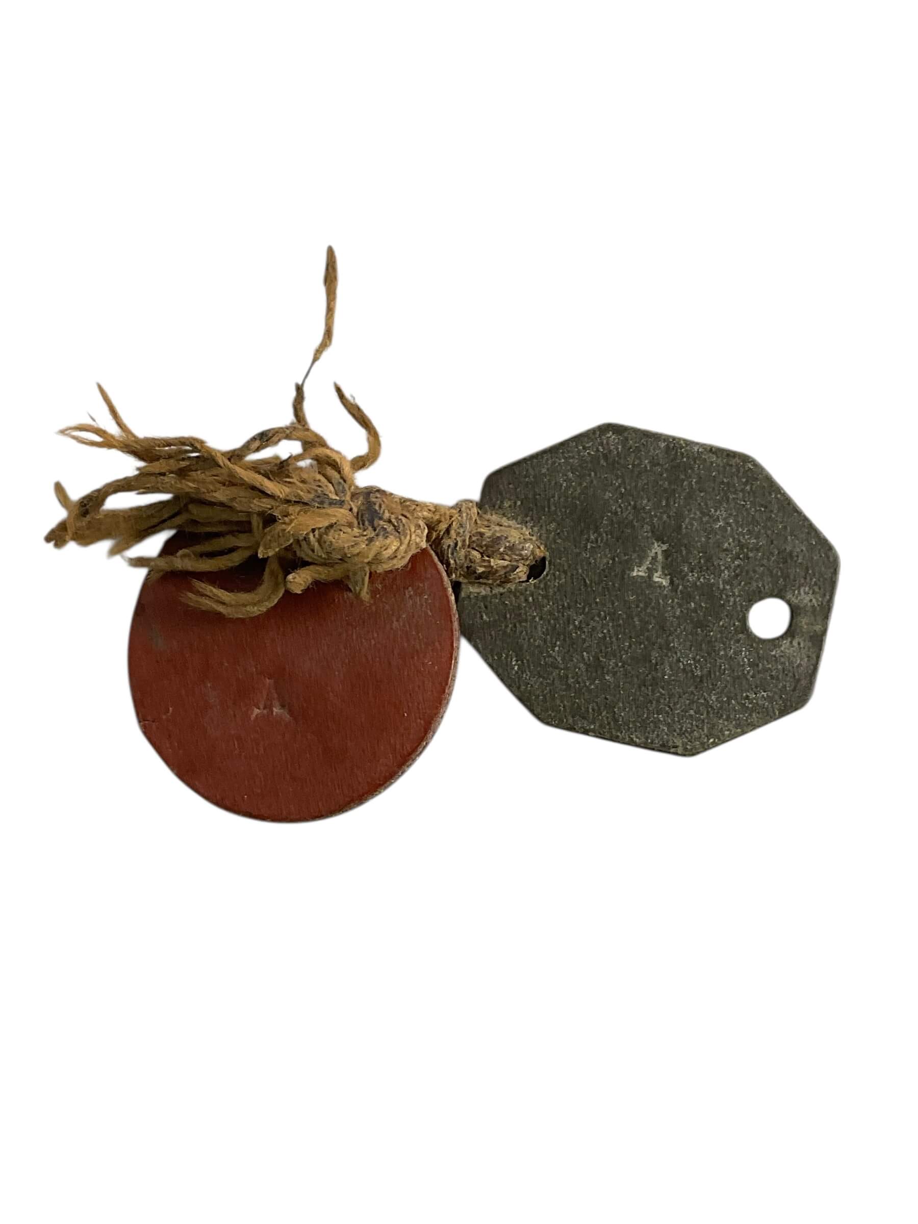 WW1 Canadian CEF Dog Tags Named C. S. Mullen This set of World War I Canadian Expeditionary Force (CEF) dog tags belonged to C. S. Mullen. The dog tags are typical of those issued to Canadian soldiers during the First World War, generally stamped with the individual’s name, regimental number, and other identifying information. These tags served to identify soldiers in the event of injury or death on the battlefield and were an essential part of military equipment from 1914 to 1918. Made from durable materials, often fiber or metal, the tags are designed for wear around the neck. Items such as these provide documentation of a soldier’s service and are of value to historians and collectors studying Canada’s involvement in the Great War. The presence of a named individual allows for further research into C. S. Mullen’s military record and potential unit within the CEF.