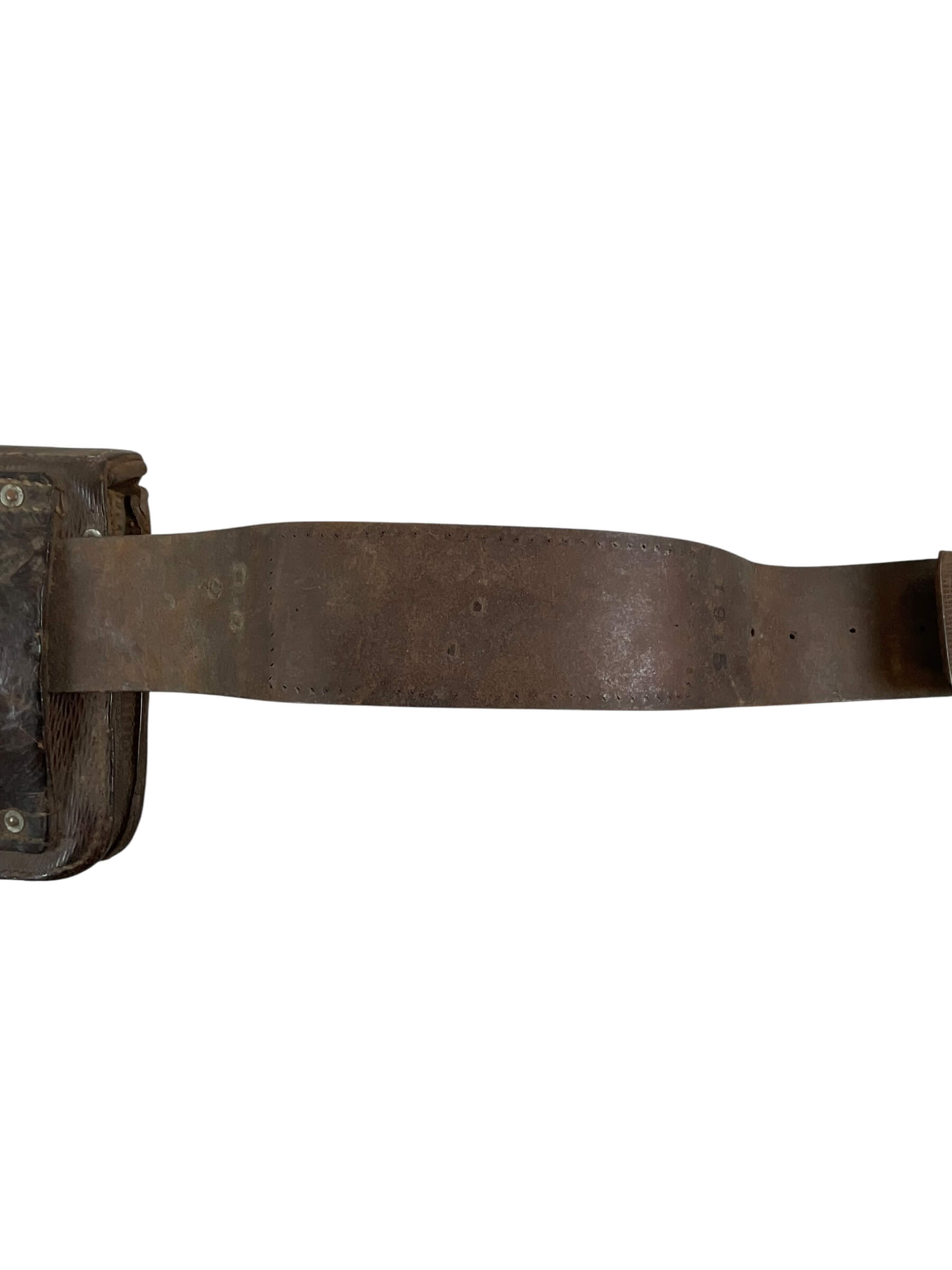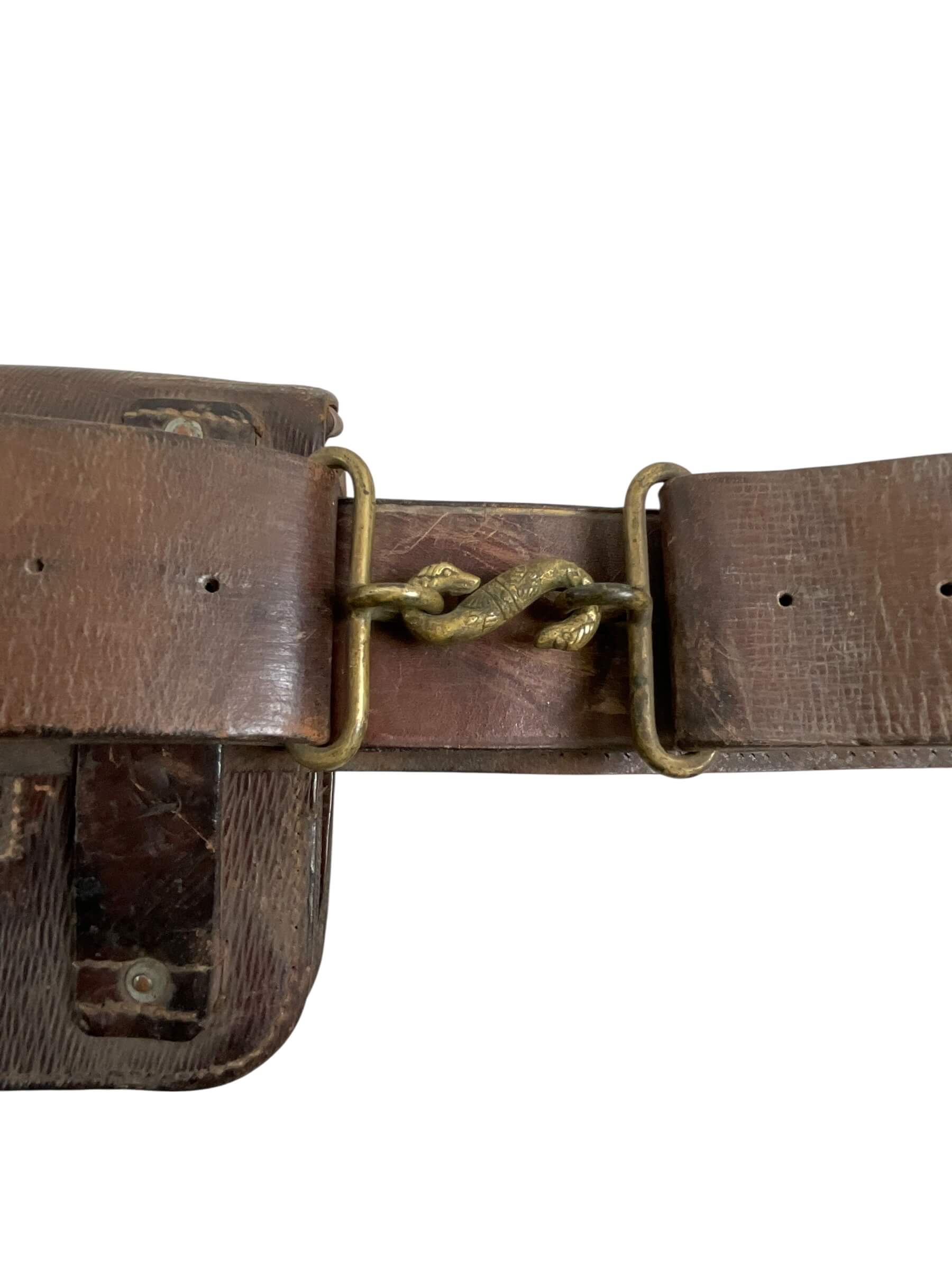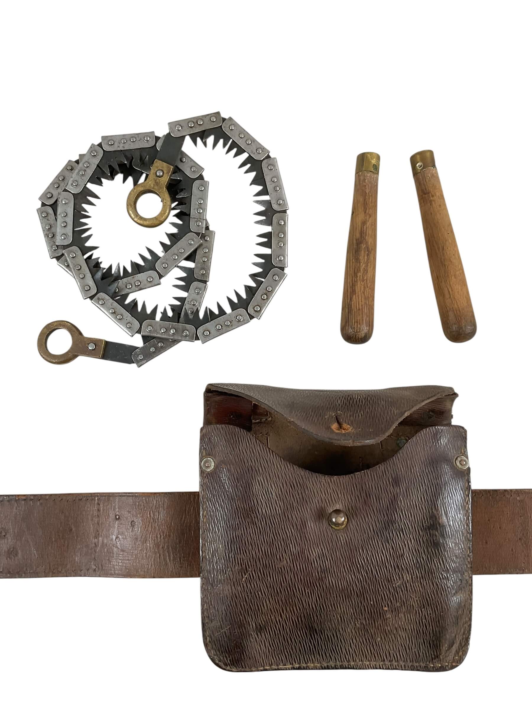 This artifact is a remarkable piece of military history: a WW1 Canadian CEF Field Saw with Snake Belt dated 1917. This tool served as an essential part of the Canadian Expeditionary Force’s gear, utilized in various field operations during one of the most significant global conflicts. The field saw is complemented by a snake belt, a distinctive feature of the period’s military attire, used to secure uniforms and carry equipment. Both the saw and the belt display the rich patina of age, revealing the authentic character and stories they carry from over a century ago. The items are marked with the year 1917, situating them in the midst of World War 1. This is not just a historical artifact, but a tangible link to Canada’s past, offering a unique insight into the experiences of the brave soldiers who served during WW1.