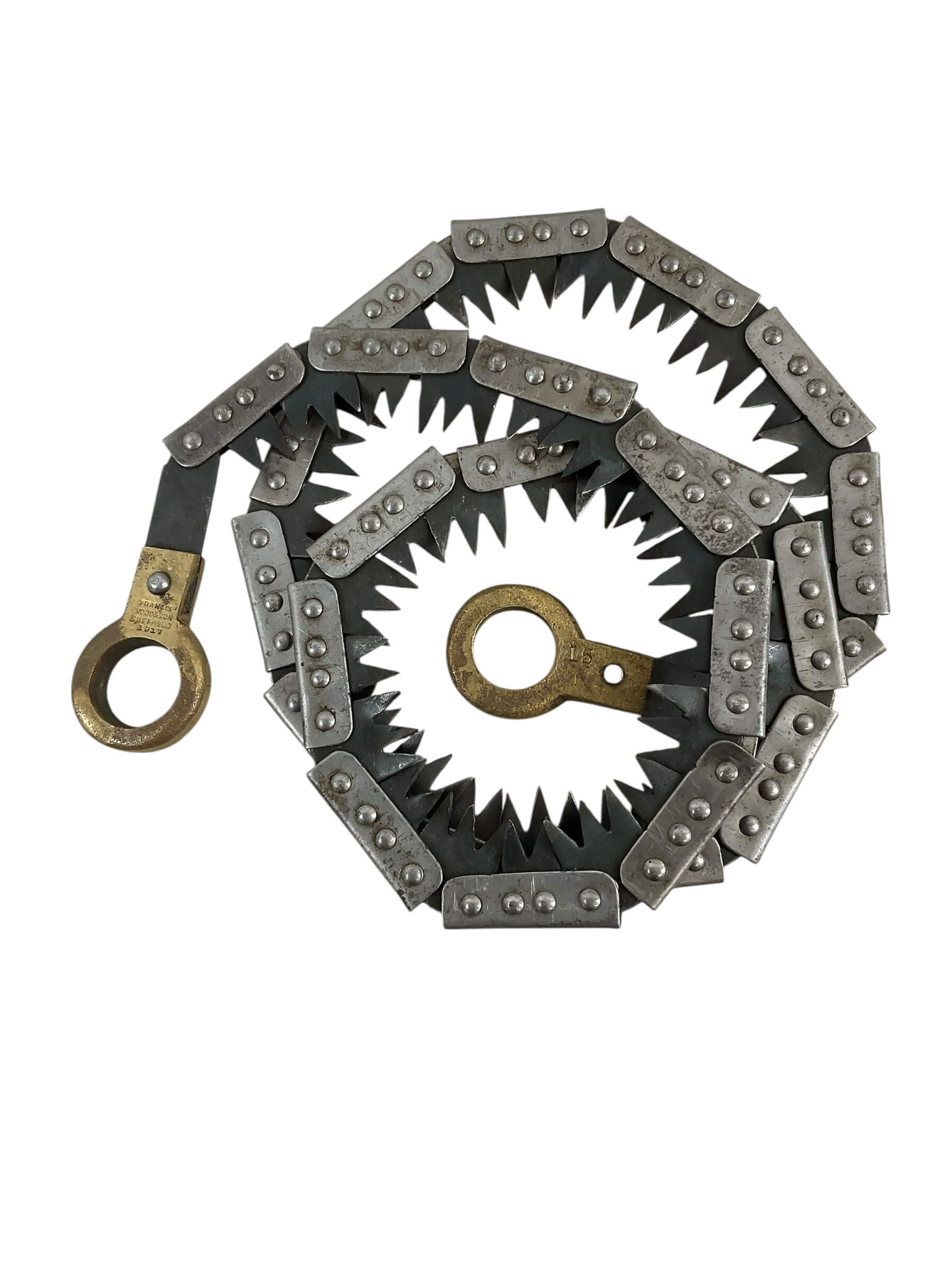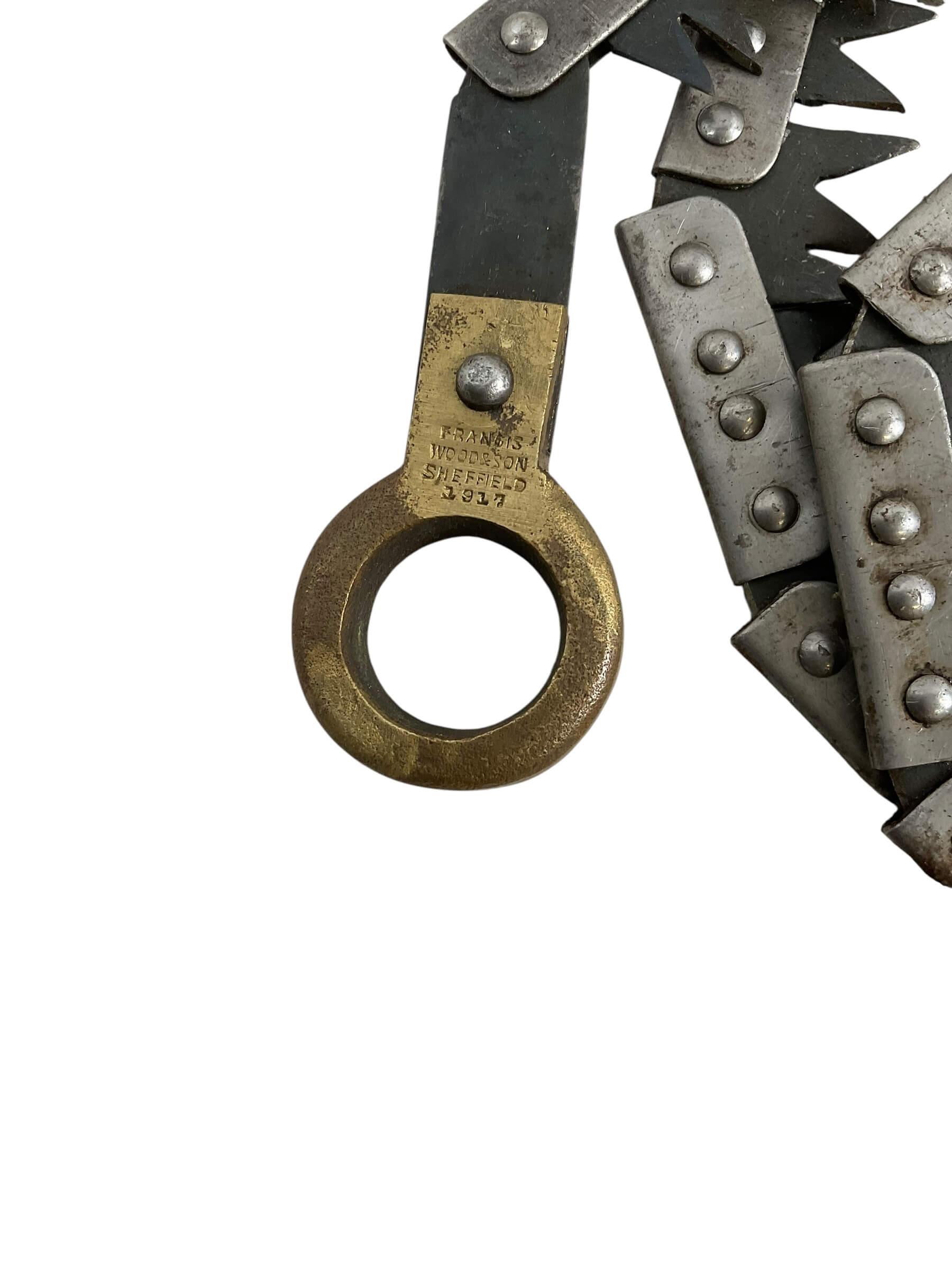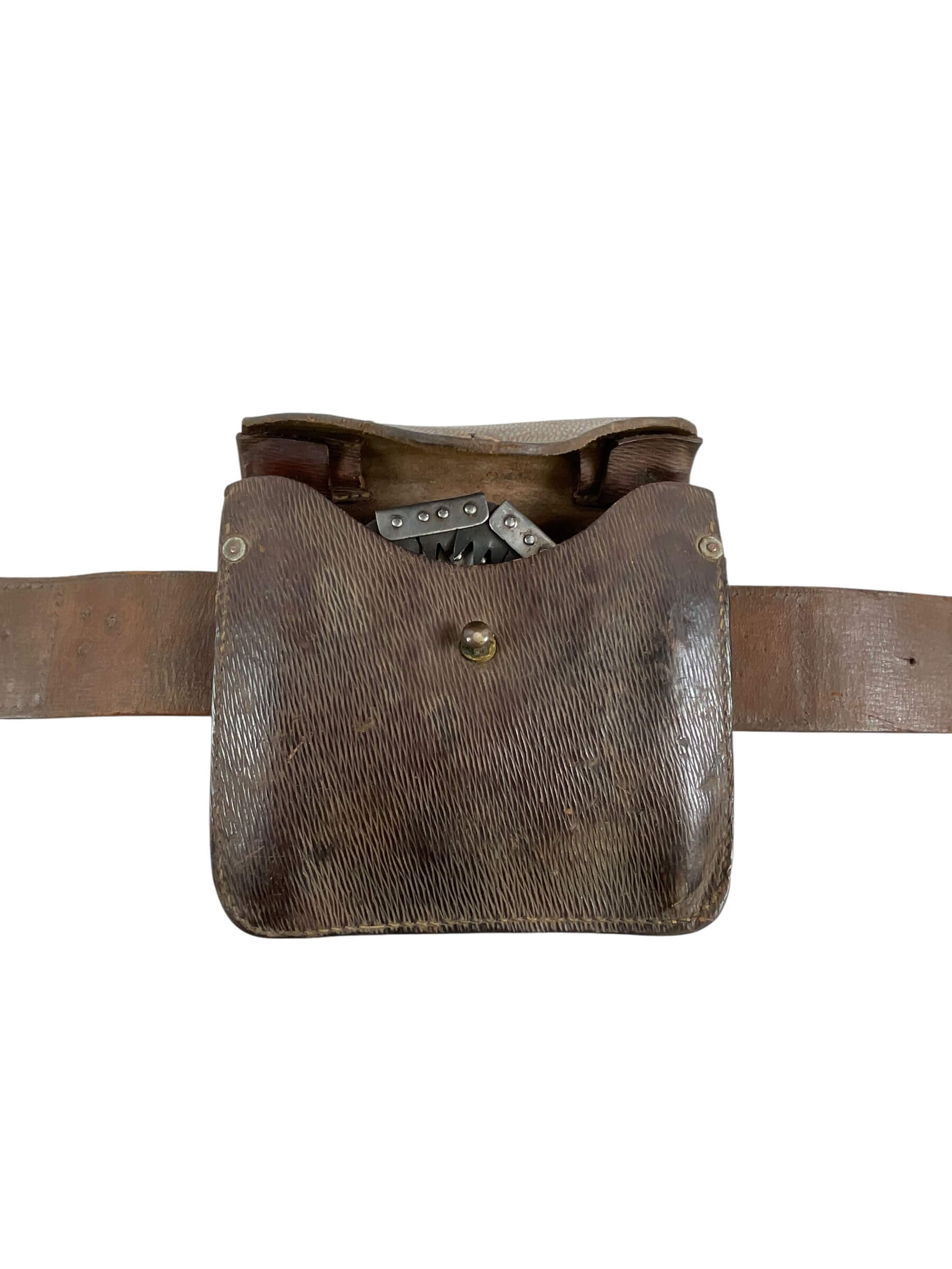 This artifact is a remarkable piece of military history: a WW1 Canadian CEF Field Saw with Snake Belt dated 1917. This tool served as an essential part of the Canadian Expeditionary Force’s gear, utilized in various field operations during one of the most significant global conflicts. The field saw is complemented by a snake belt, a distinctive feature of the period’s military attire, used to secure uniforms and carry equipment. Both the saw and the belt display the rich patina of age, revealing the authentic character and stories they carry from over a century ago. The items are marked with the year 1917, situating them in the midst of World War 1. This is not just a historical artifact, but a tangible link to Canada’s past, offering a unique insight into the experiences of the brave soldiers who served during WW1.