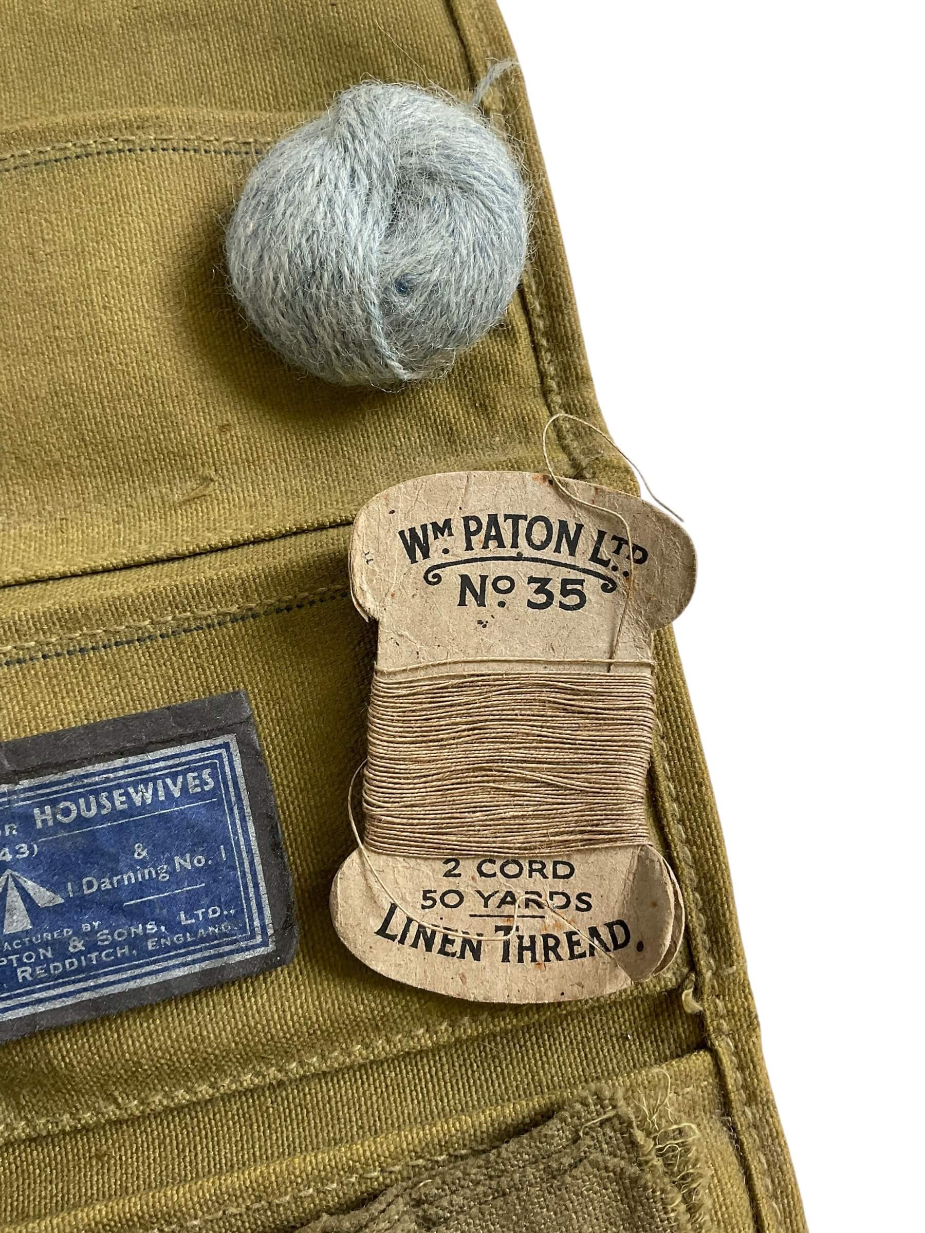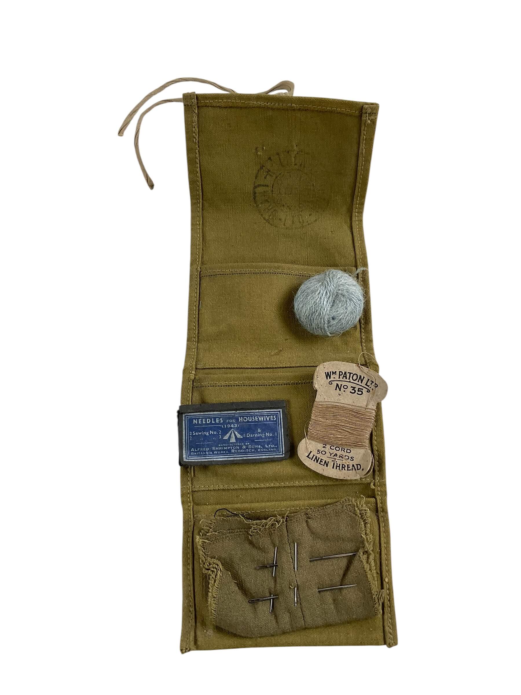 This title refers to a WW1 Canadian CEF Housewife, which is a small, portable sewing kit, dated back to 1915. The kit was issued to the Canadian Expeditionary Force (CEF) soldiers during World War 1 for them to mend their uniforms and repair their gear. The term ‘housewife’ was used in the military to describe these essential kits. The particularity of this item is that it still contains its original contents, making it a rare relic of wartime history. This item provides a tangible connection to the past, offering insight into the daily lives of Canadian soldiers during the challenging times of the first World War. It is a valuable piece for collectors and history enthusiasts, especially those interested in military memorabilia.