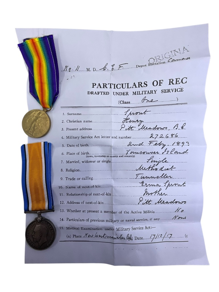 WW1 Canadian CEF Medal Group Pair 2007110 H. Sproute Canadian Engineers Tunneller
