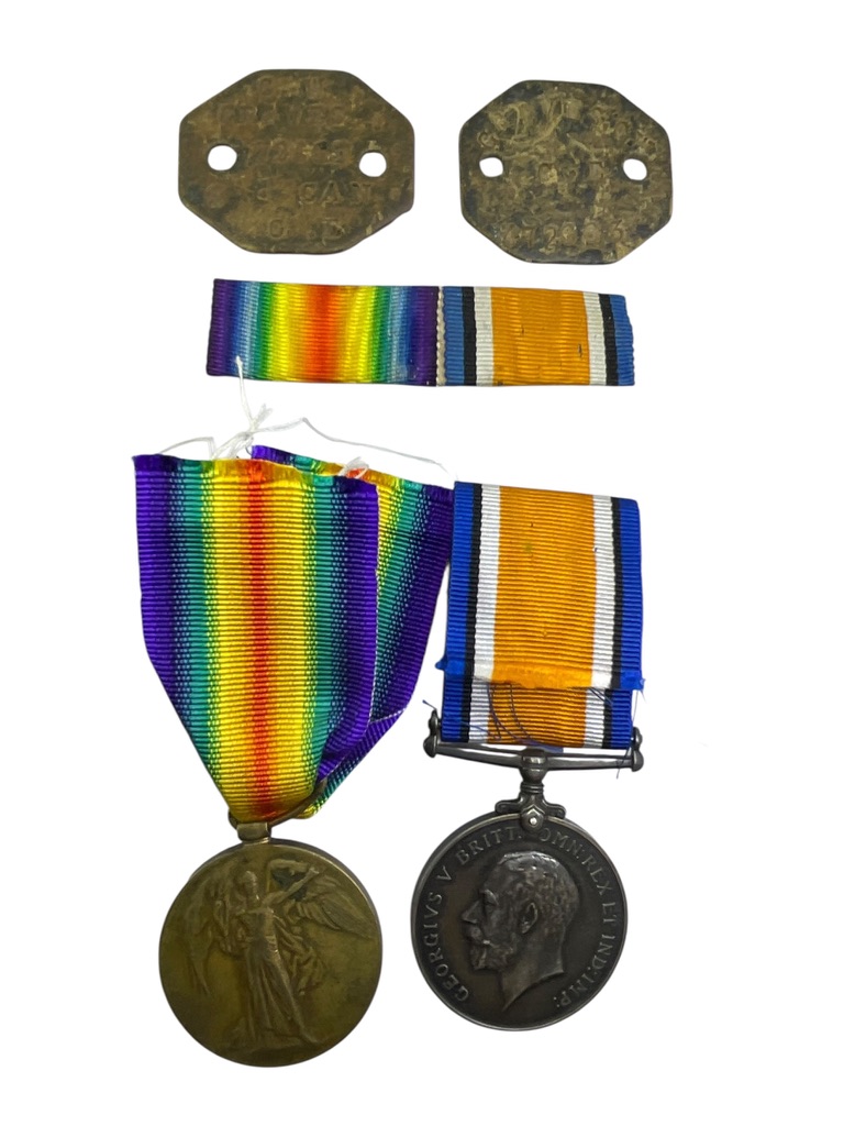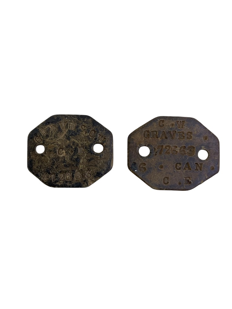 This item is a World War I Canadian Expeditionary Force (CEF) medal group pair awarded to Private C.W. Graves, regimental number 472663, of the 46th Battalion. The group consists of two officially named campaign medals: the British War Medal and the Victory Medal, both bearing the recipient’s service details. Private Graves served with the 46th Battalion, which was part of the 10th Infantry Brigade, 4th Canadian Division, and saw action in several key battles on the Western Front, including Vimy Ridge and Passchendaele. The medals display typical period wear and are impressed with Graves’s name, number, and unit on the rims. This set provides a tangible link to a Canadian infantryman’s service during the First World War. The 46th Battalion, often referred to as the “Suicide Battalion,” is notable for its high casualty rate, reflecting the intense combat experienced by its members.