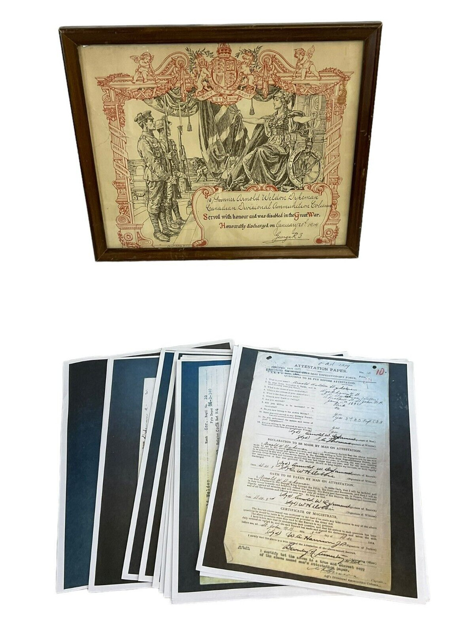 This WW1 Canadian CEF Medal Group Trio with Certificate of Service is a remarkable historical collection commemorating the service of Gunner Arnold Weldon Dykeman in the Canadian Expeditionary Force. Featuring a low service number (#10) associated with the Divisional Ammunition Column (CDAC), this set includes three medals that were awarded for Dykeman’s dedication and bravery during the Great War. Each medal symbolizes a unique aspect of his military contribution, making this trio a significant keepsake for collectors and historians alike. The accompanying Certificate of Service further authenticates the honors and provides a detailed record of Dykeman’s enlistment and service period. This comprehensive collection reflects Canada’s proud military heritage and the sacrifices made by its servicemen. Perfect for those with a deep interest in WW1 history, this ensemble offers a tangible connection to the past and a respectful tribute to those who served.
