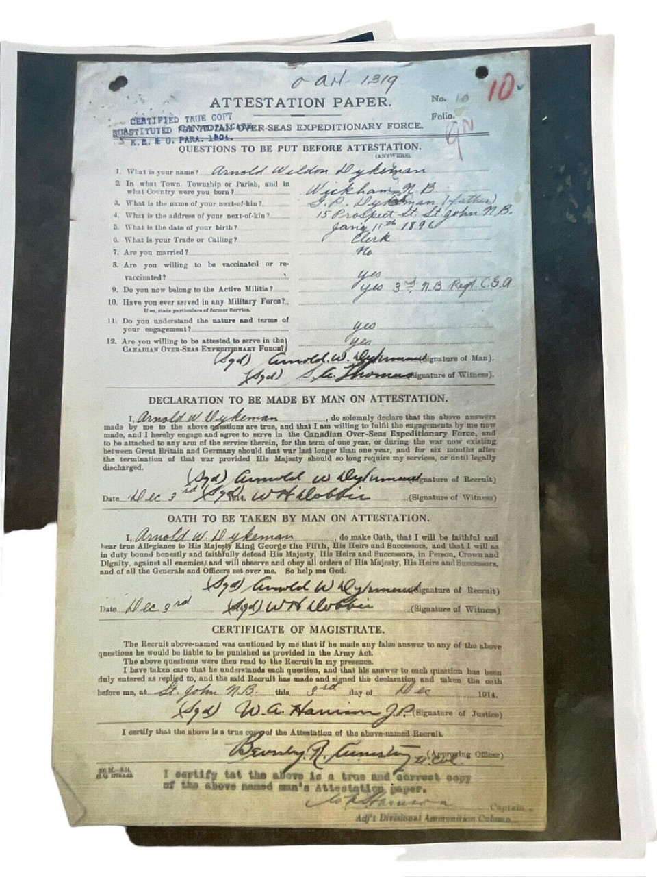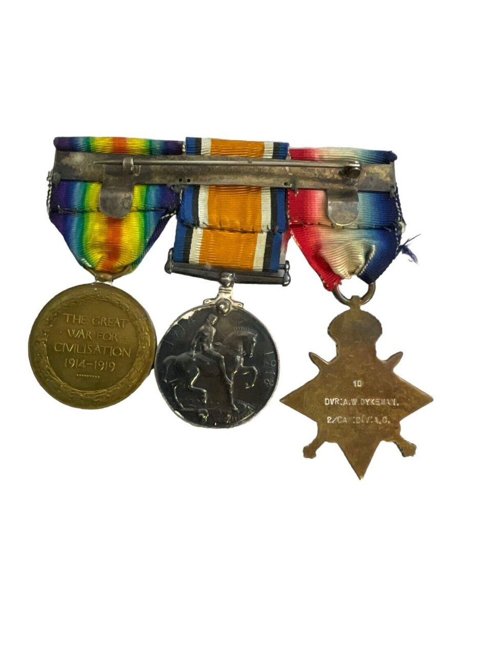 WW1 Canadian CEF Medal Group Trio with Certificate of Service LOW SERVICE # CDAC. #10 service number to Gunner Arnold Weldon Dykeman Divisional Ammunition Column