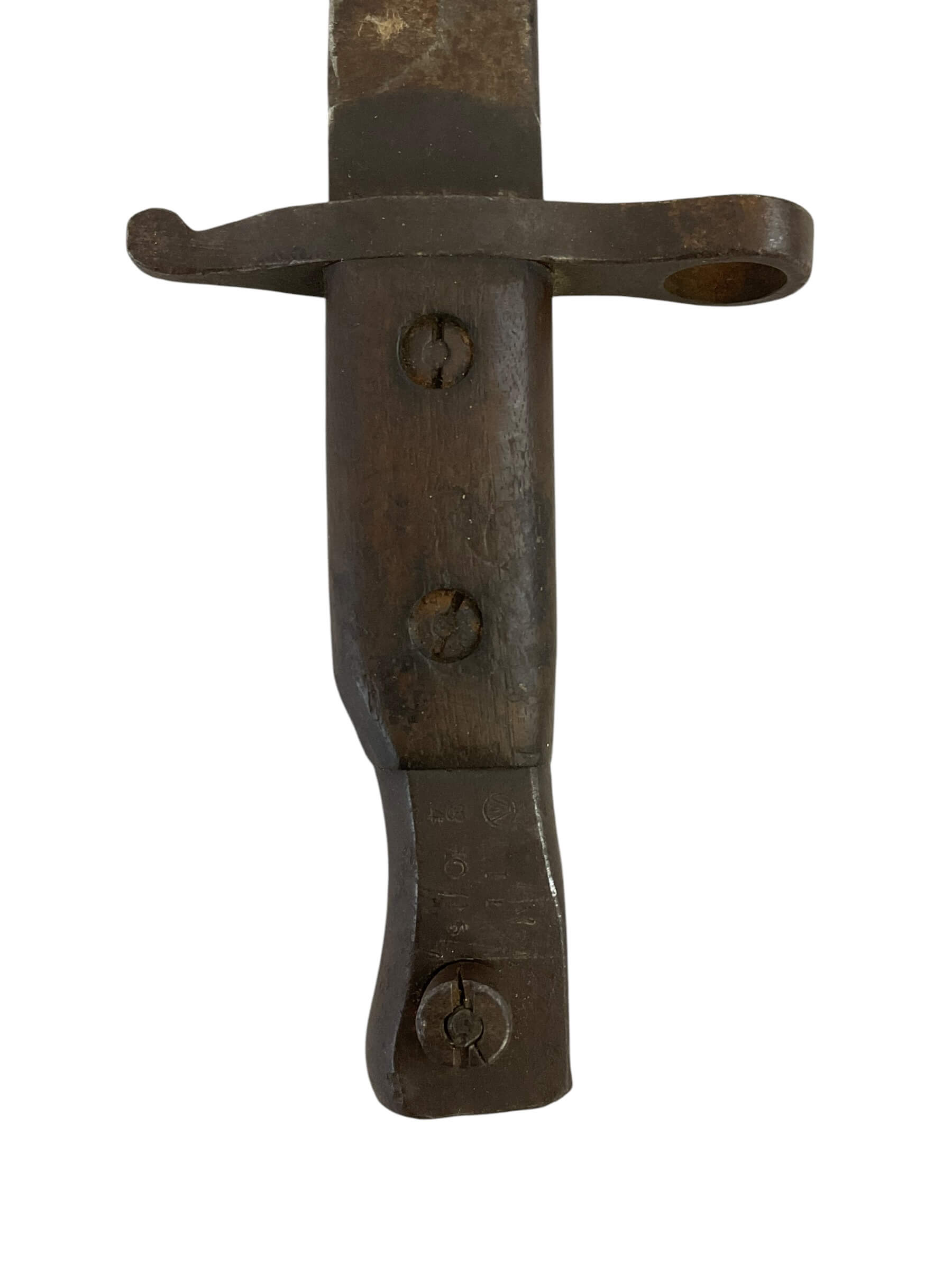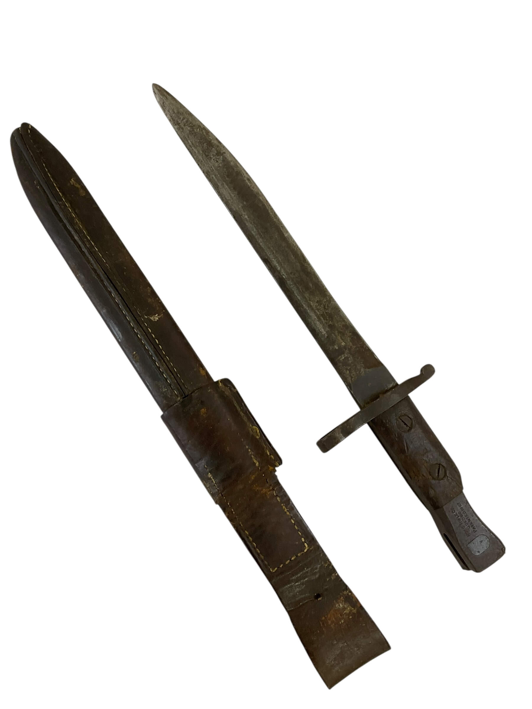 This is an exquisite WW1 Canadian CEF MkII Ross Bayonet with a scabbard, dated 1916. The Ross Bayonet is a historical item, a testament to the bravery and resilience of the Canadian Expeditionary Force during the First World War. This particular model, the MkII, is engraved with the date 1916, marking it as a genuine artifact from the time of the war. The bayonet features a sturdy, well-preserved blade and is housed in its original scabbard, adding to its authenticity and historical significance. The intricate markings and design on the bayonet tell a story of its past and the men who may have wielded it. This WW1 Canadian CEF MkII Ross Bayonet is not only an exceptional piece of Canadian military history but also a valuable collector’s item for military enthusiasts.
